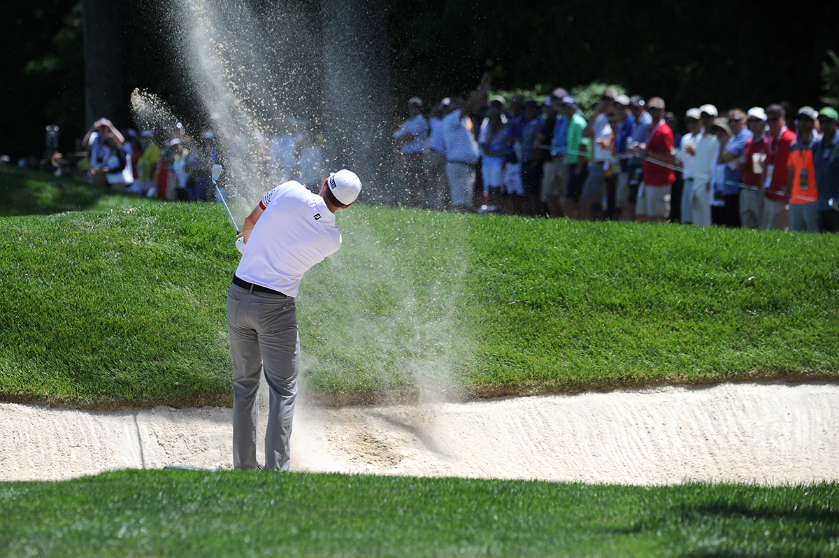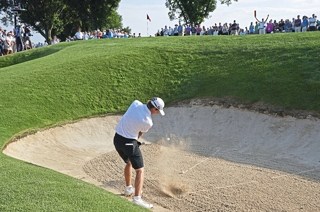 The short par 4 second hole on the other side of the turnpike is friendlier but will still challenge players to make a decision off the tee, with multiple possible landing areas all presenting their own potential risks and rewards. Sit in the grandstands behind the second green, and you’ll likely see many different approaches to the hole — with some players hanging well back off the tee to avoid taking on the bunkers or ditch that line the fairway, others attempting to drive the green, and everything in between.