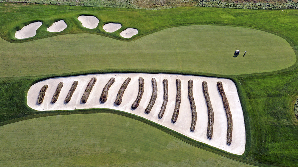 The tee shot on the third hole brings players face-to-face with one of the most iconic and intimidating sights in golf — the Church Pews bunker. The 100-yard sand trap lining the left side of the fairway on holes 3 and 4 features 13 grassy mounds spaced several feet apart.