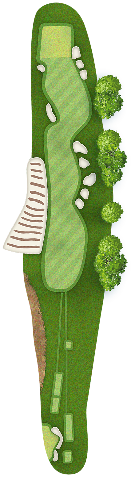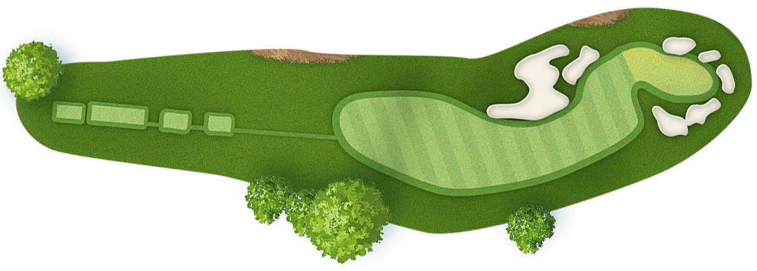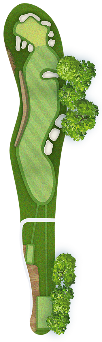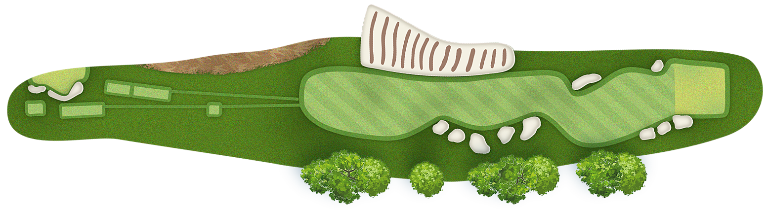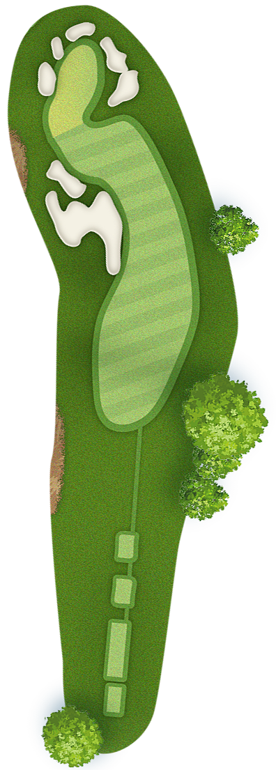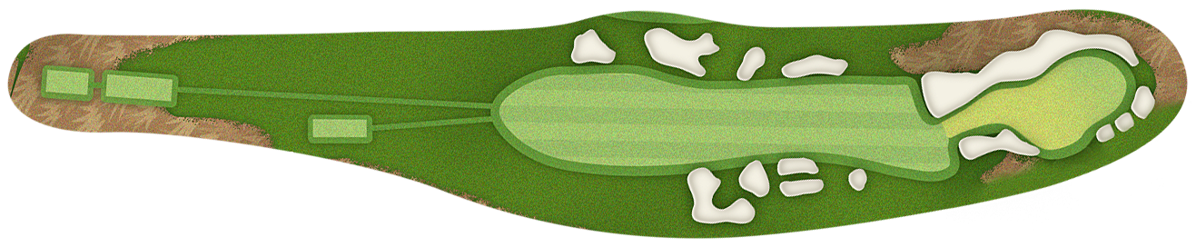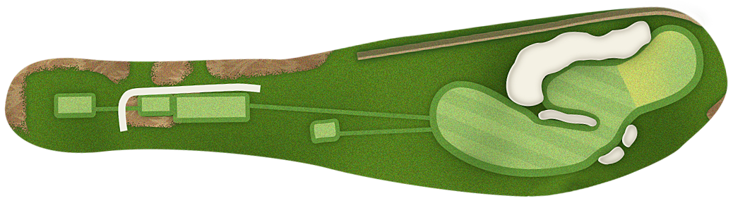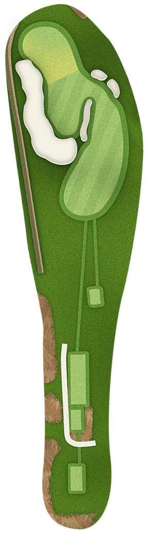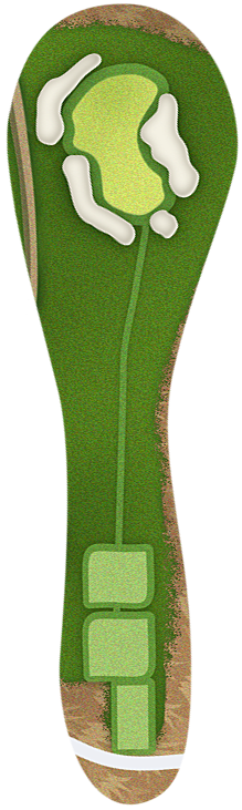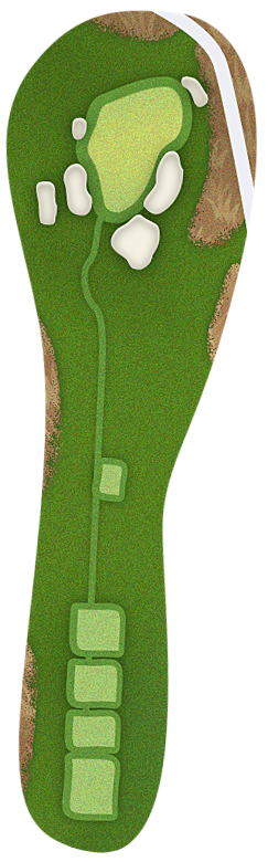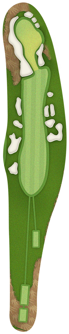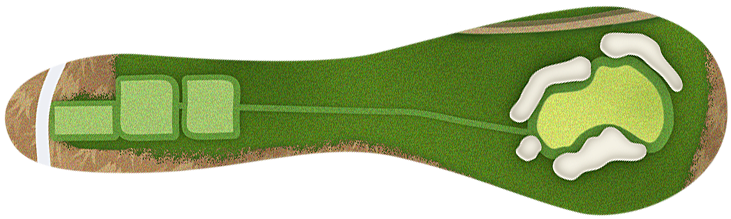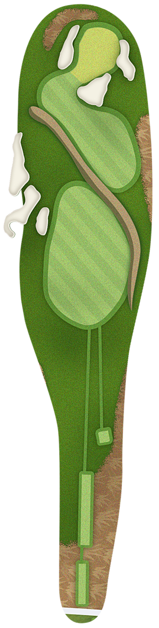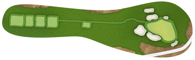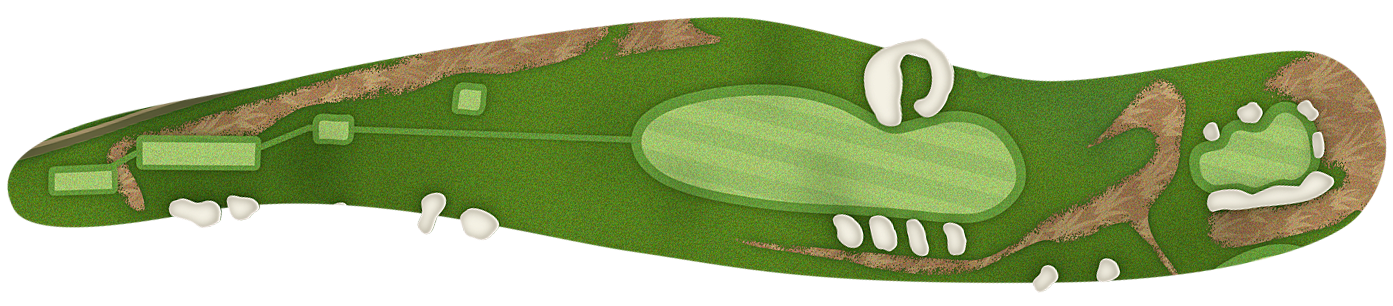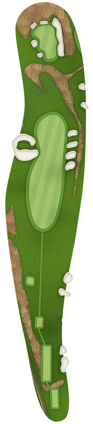 The green slopes severely front-to-back and right-to-left. Any player that misses short or right of the putting surface will face a challenging chip, and birdie opportunities are few and far in between for those who hit the green in regulation.