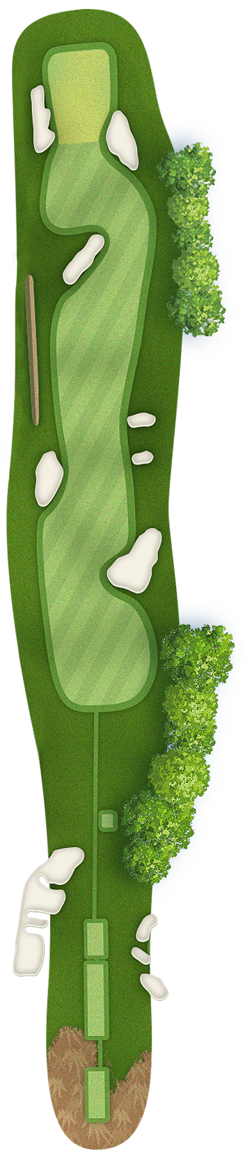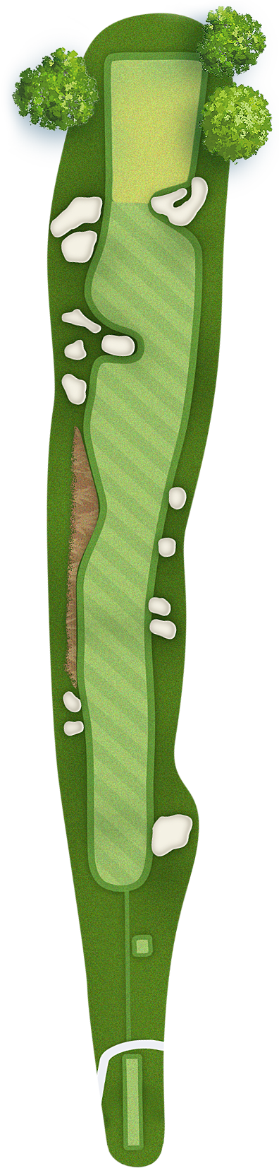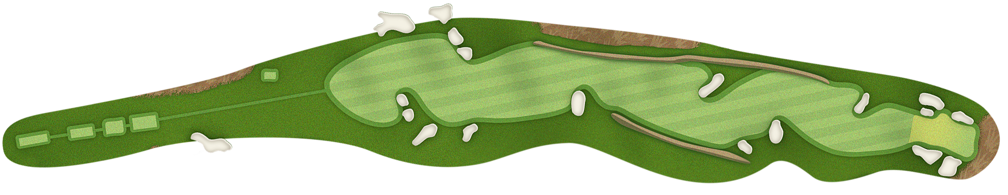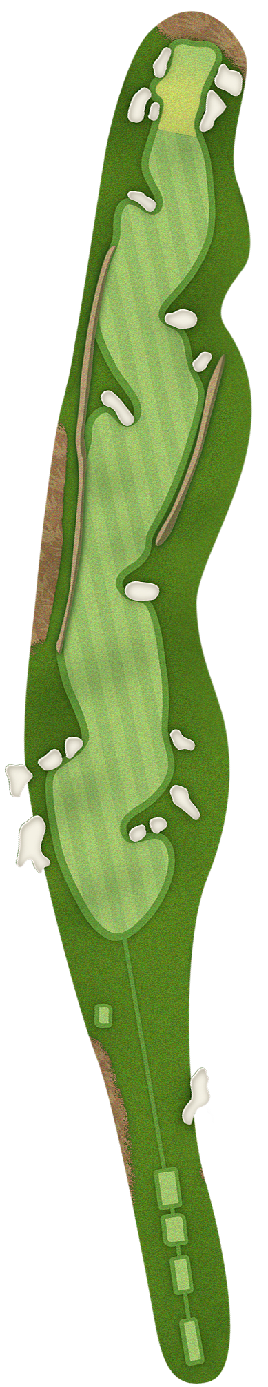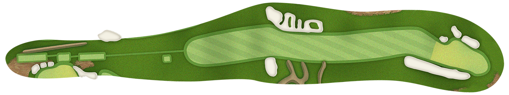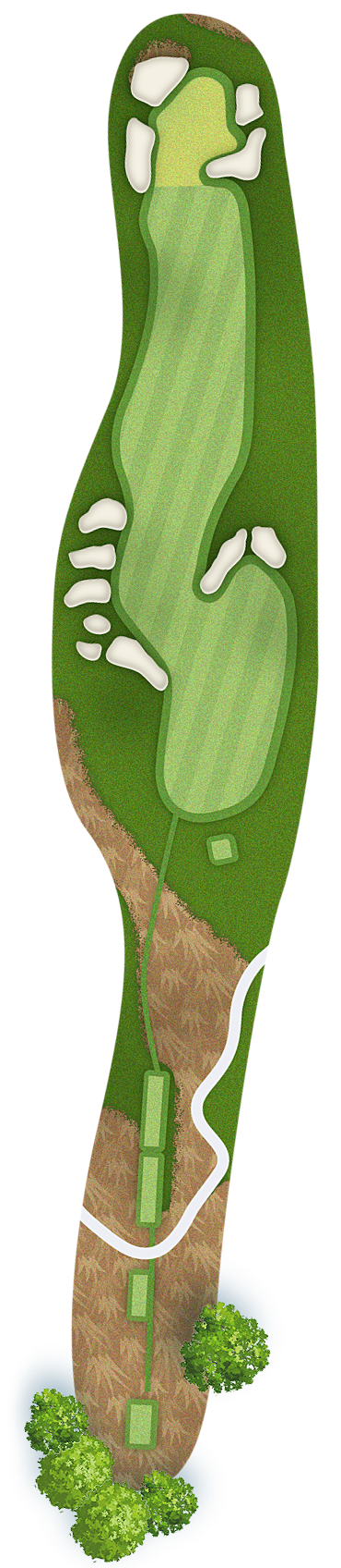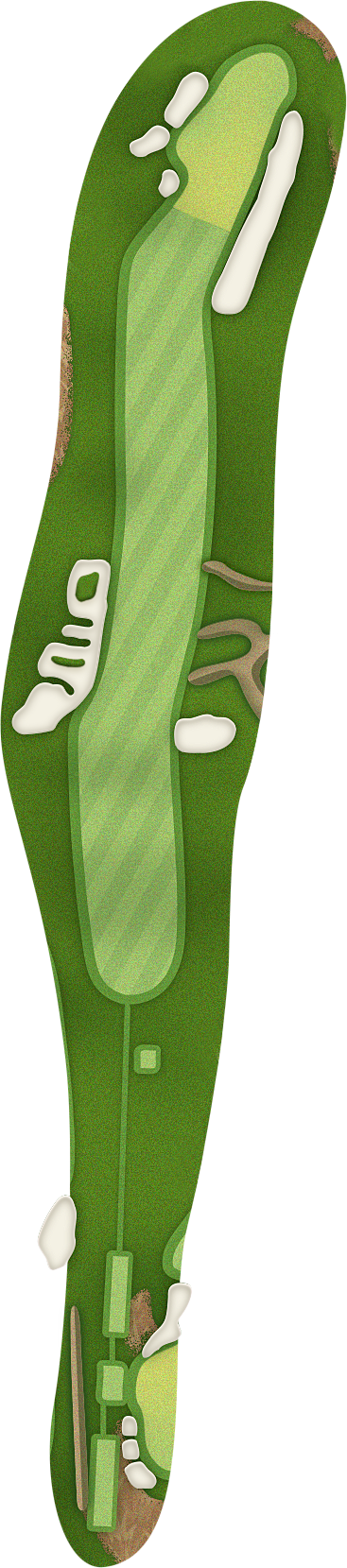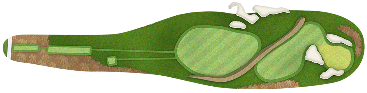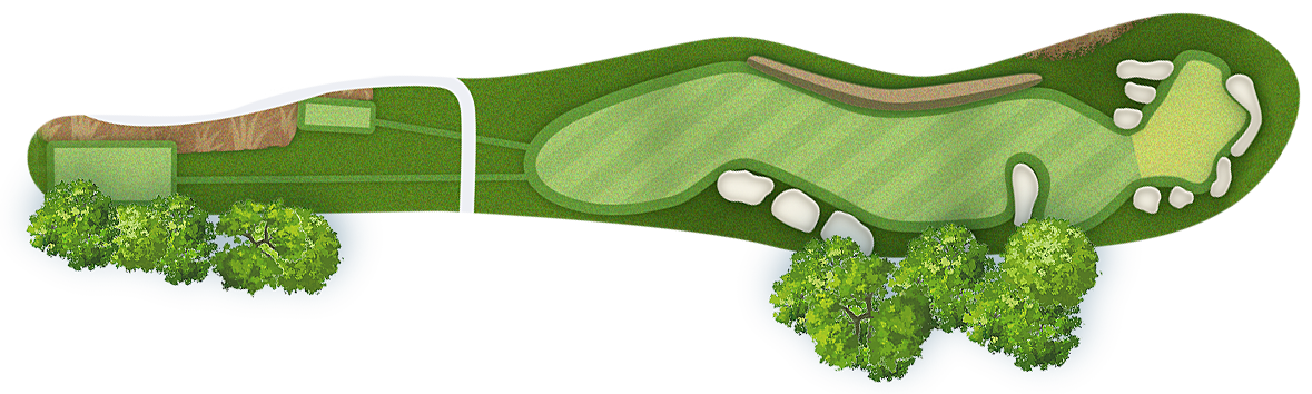 The green slopes severely front-to-back and right-to-left. Any player that misses short or right of the putting surface will face a challenging chip, and birdie opportunities are few and far in between for those who hit the green in regulation.