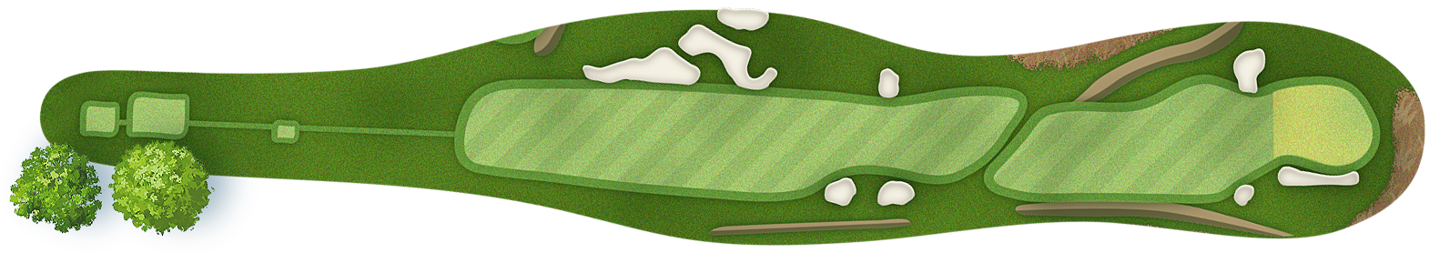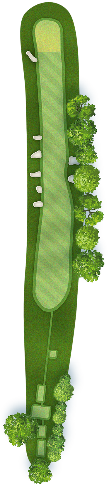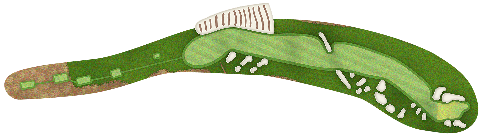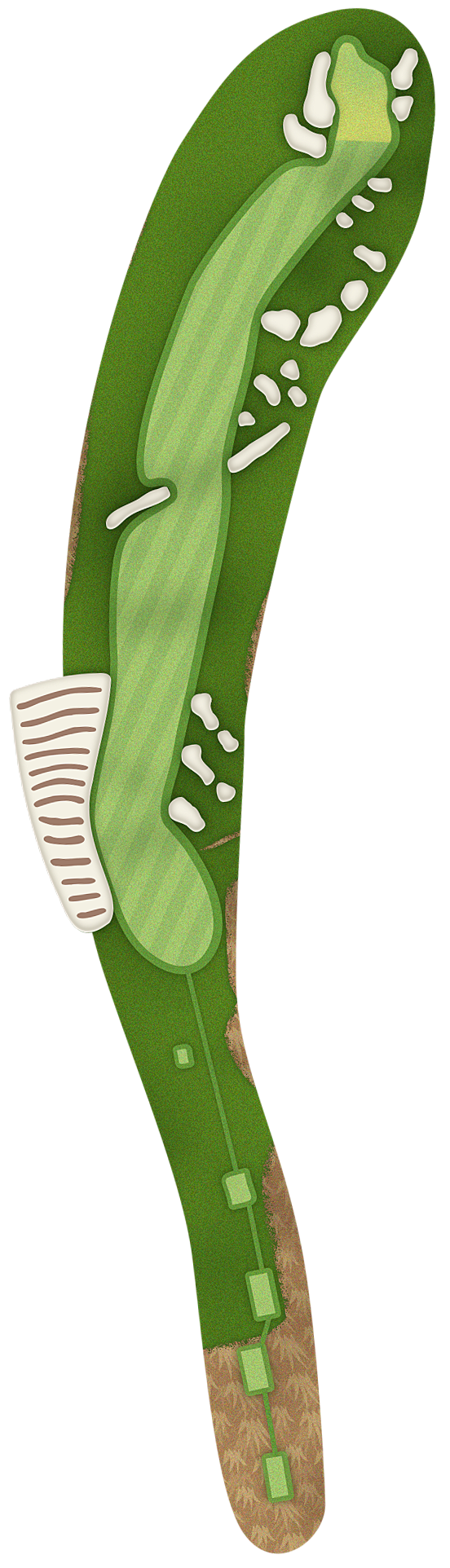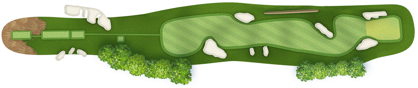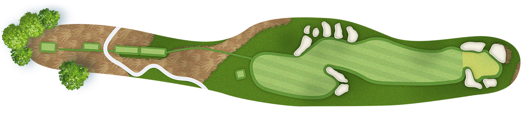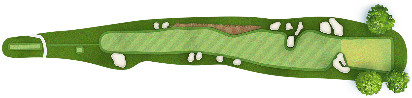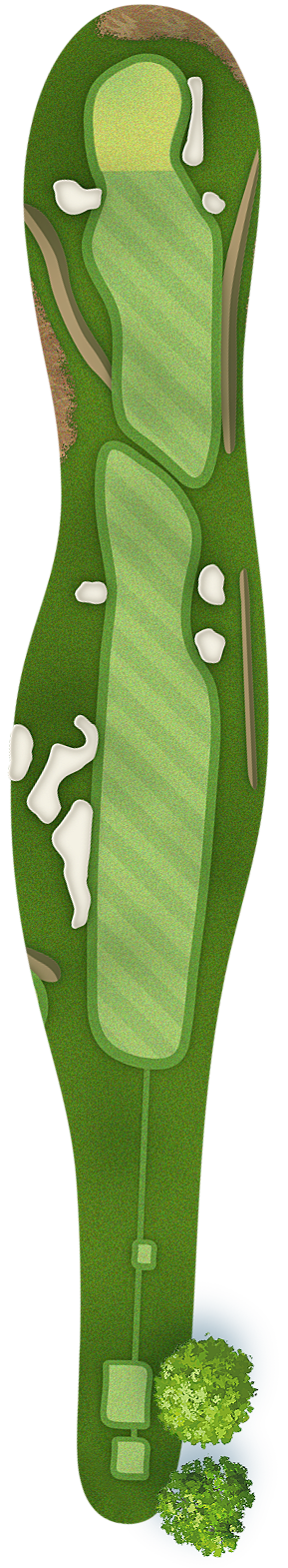 The green slopes severely front-to-back and right-to-left. Any player that misses short or right of the putting surface will face a challenging chip, and birdie opportunities are few and far in between for those who hit the green in regulation.