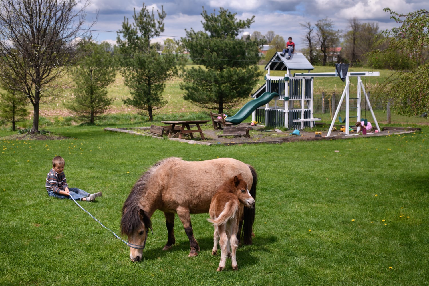 Left:Top: Jeremy Burkholder, 6, takes the family pony into the barn on Tuesday, March 14, 2019, at his home in East Earl, Lancaster County. "I just want to see every child in Pennsylvania being protected," says Jeremy’s mother, Diane. "As long as we have conservative intervention committees, they're not protected.” | Right:Bottom: Jeremy Burkholder, left, 6, pushes his brother, Sheldon, 8, as they play in their backyard on Tuesday, March 14, 2019, in East Earl, Lancaster County. The boys will be joining a homeschool co-op for next year to help them to grow their social skills and to expand their friendships now that they are no longer in school and in their old community.