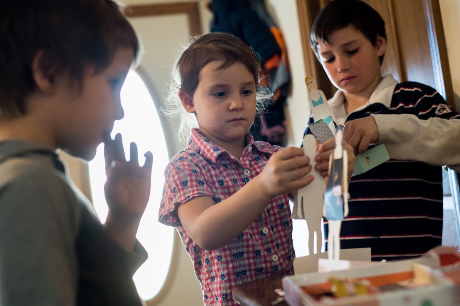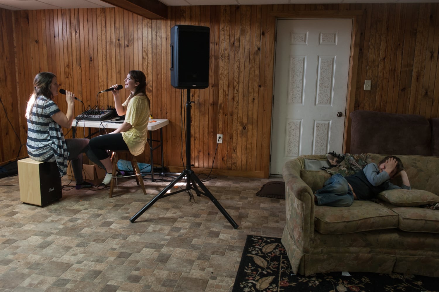 Left:Top: Amanda Burkholder, left, 21, sings with her sister, Bethany, 14, as their brother Jeremy, 6, lounges nearby on Tuesday, March 12, 2019, at home in East Earl. The older Burkholder daughters are starting anew to build their social circles after the family left their conservative Mennonite church. Amanda lost the group of about 15 close girlfriends she grew up with at the Mennonite church. When she left the culture, they grew apart. "I knew that if I would leave, I would be leaving all of them behind," said Amanda. | Right:Bottom: From left, Jeremy Burkholder, 6, dresses paper dolls with his sister, Diana, 4, and brother, Sheldon, 8, on Tuesday, March 12, 2019, at their home in East Earl. In an effort to stamp out the cycles of abuse within their family, the children’s parents have made a conscious effort to teach them about their bodies and appropriate boundaries.
