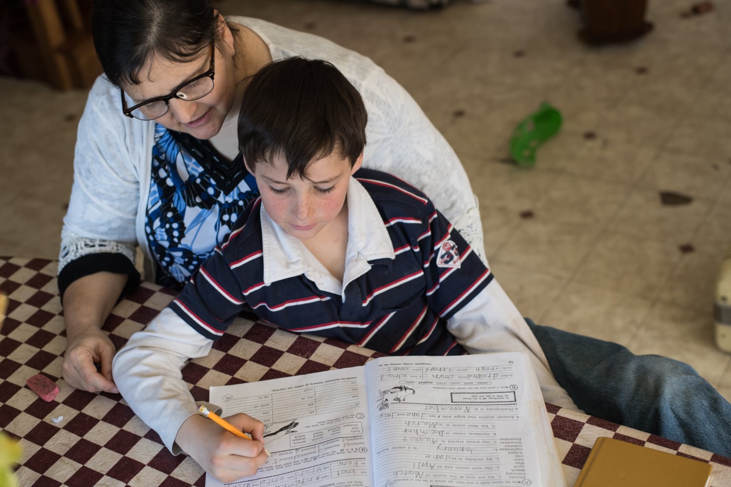 Diane Burkholder helps her son Sheldon, 8, with his homeschooling on Tuesday, March 12, 2019, at their home in East Earl. The Burkholders have help with their homeschooling because Pennsylvania law requires homeschool teachers to have a GED or high school diploma, which neither parent has. Both grew up as Old Order Mennonites and left school after completing eighth grade, which was customary in the horse-and-buggy culture.