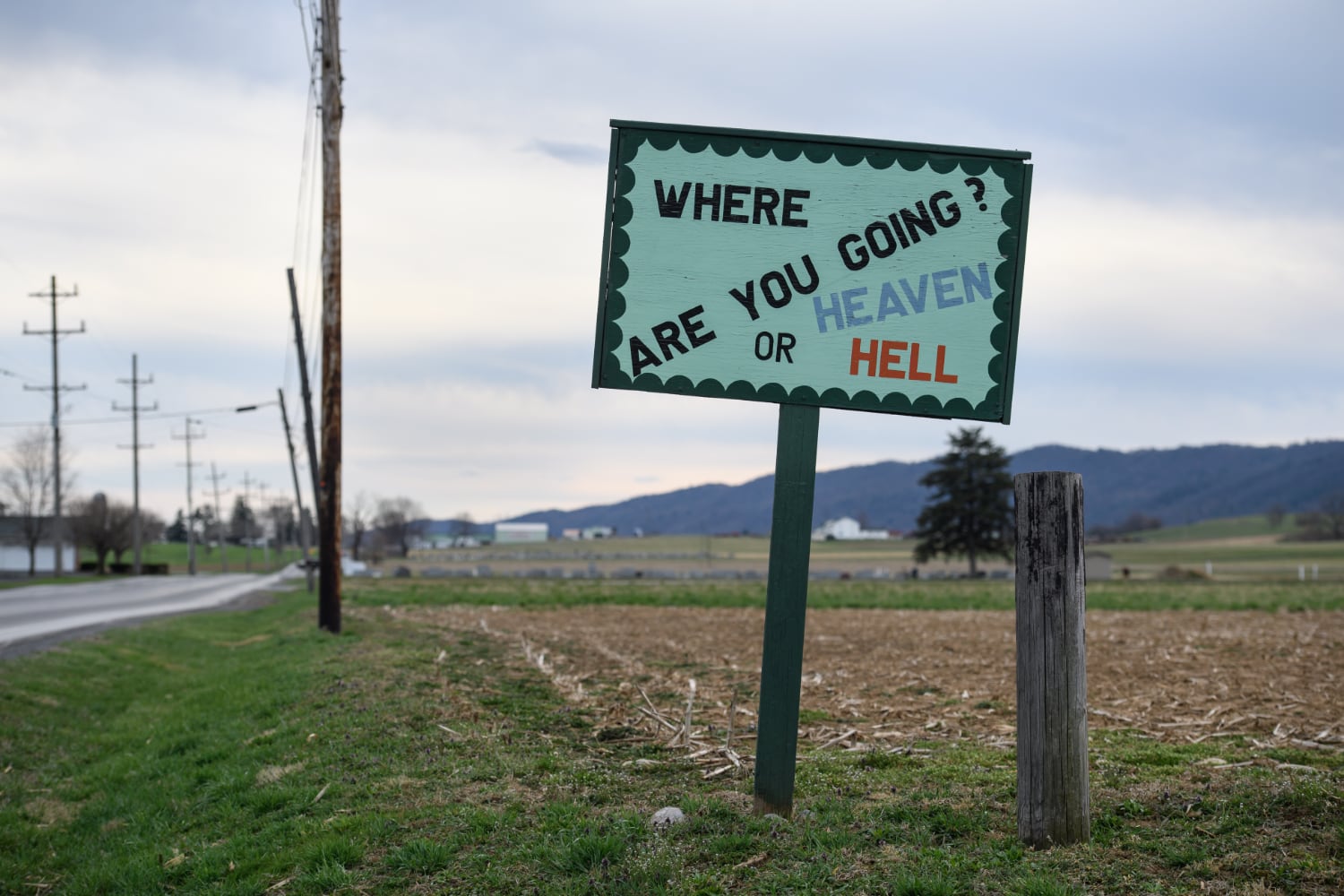 I was a sinner and going to hell because I was getting divorced. In February he started getting desperate when he realized that I wasn’t giving in. That’s when he started sending me as many as 2-3 letters per week. He was condemning me, and twisting scriptures to justify himself. | Hand-painted sign in a cornfield in Central Pennsylvania.