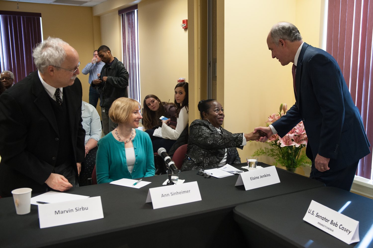 U.S. Sen. Bob Casey (D-PA) listens to fellow panel members as they discuss his new bipartisan legislation, the Supporting Grandparents Raising Grandchildren Act (S. 1091) on Monday, April 9, 2018, at A Second Chance in East Hills. The legislation creates a one-stop-shop of information and resources to support these "Grandfamilies." (Stephanie Strasburg/Post-Gazette)