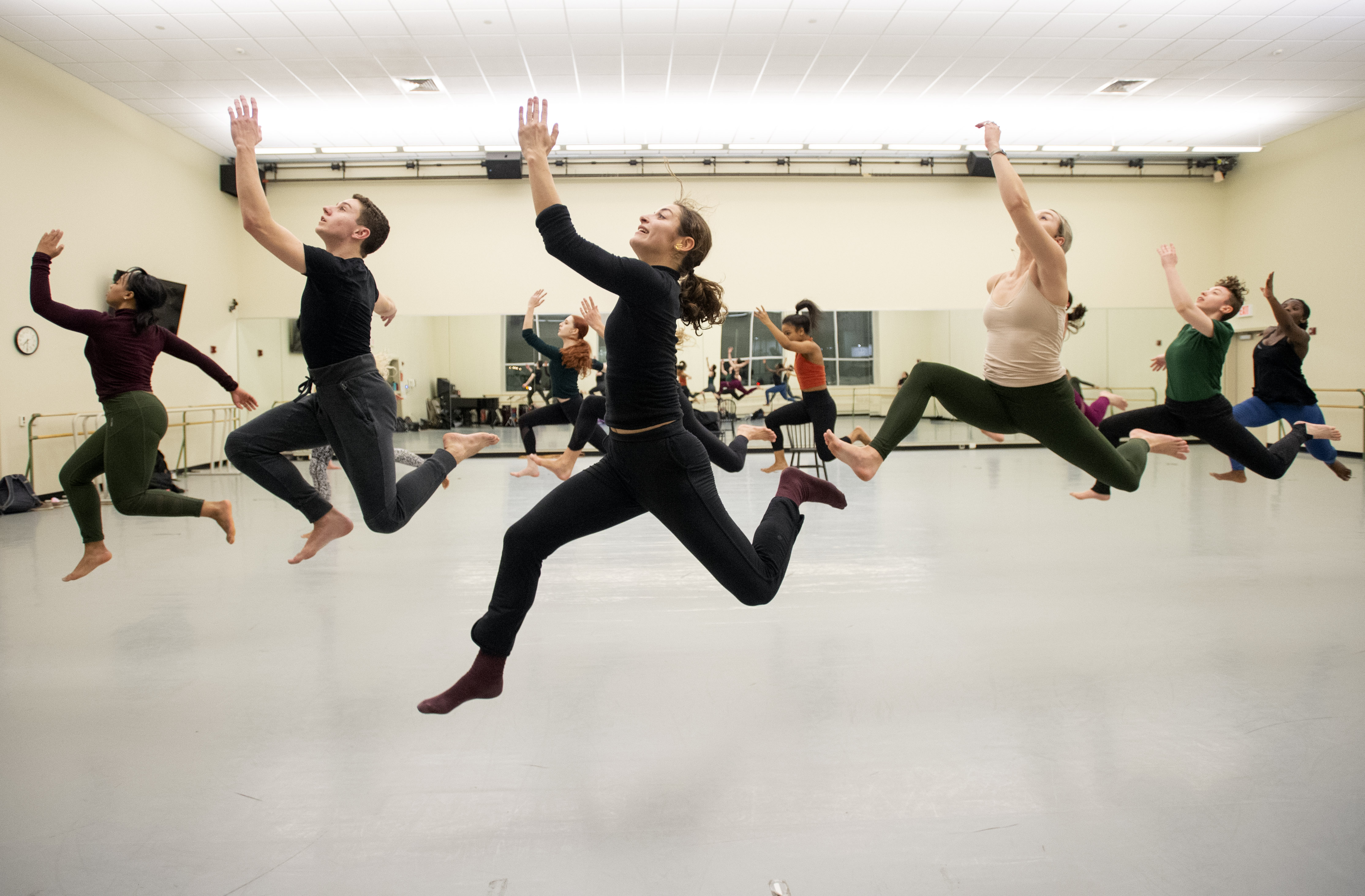 Point Park University senior Jane Zogbi rehearses with the Point Park University Conservatory Dance Company as they prepare for their winter dance concert on Tuesday, Nov. 27, 2018, at GRW Dance Complex at Point Park University, downtown. (Steph Chambers/Post-Gazette)
