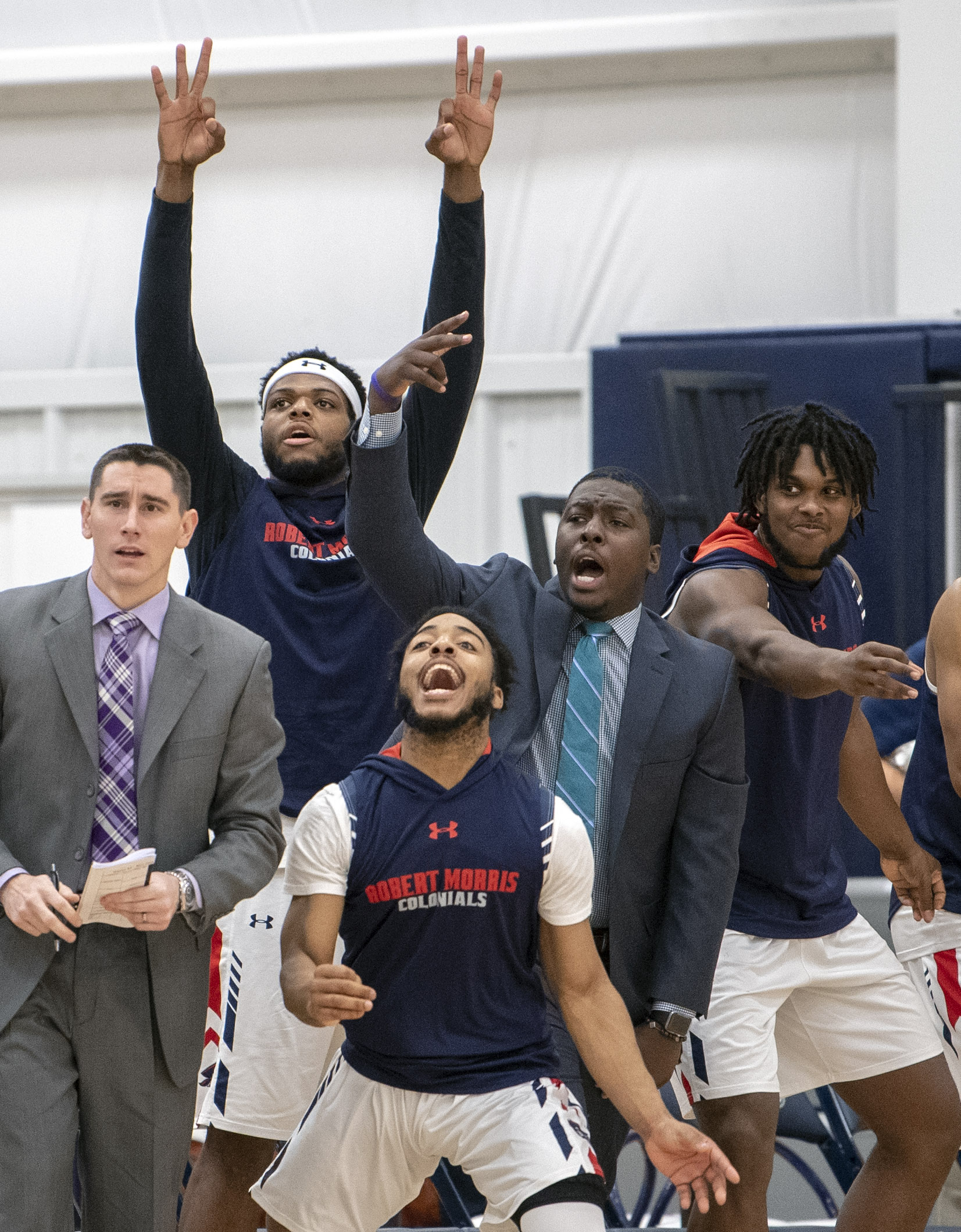 12_WIP_1129 November 29, 2018 • 1653 × 2119 • 12_WIP_1129 Robert Morris University’s bench erupts after a three-pointer against Youngstown State on Wednesday, Nov. 28, 2018, at Robert Morris University in Moon Township. (Steph Chambers/Post-Gazette)