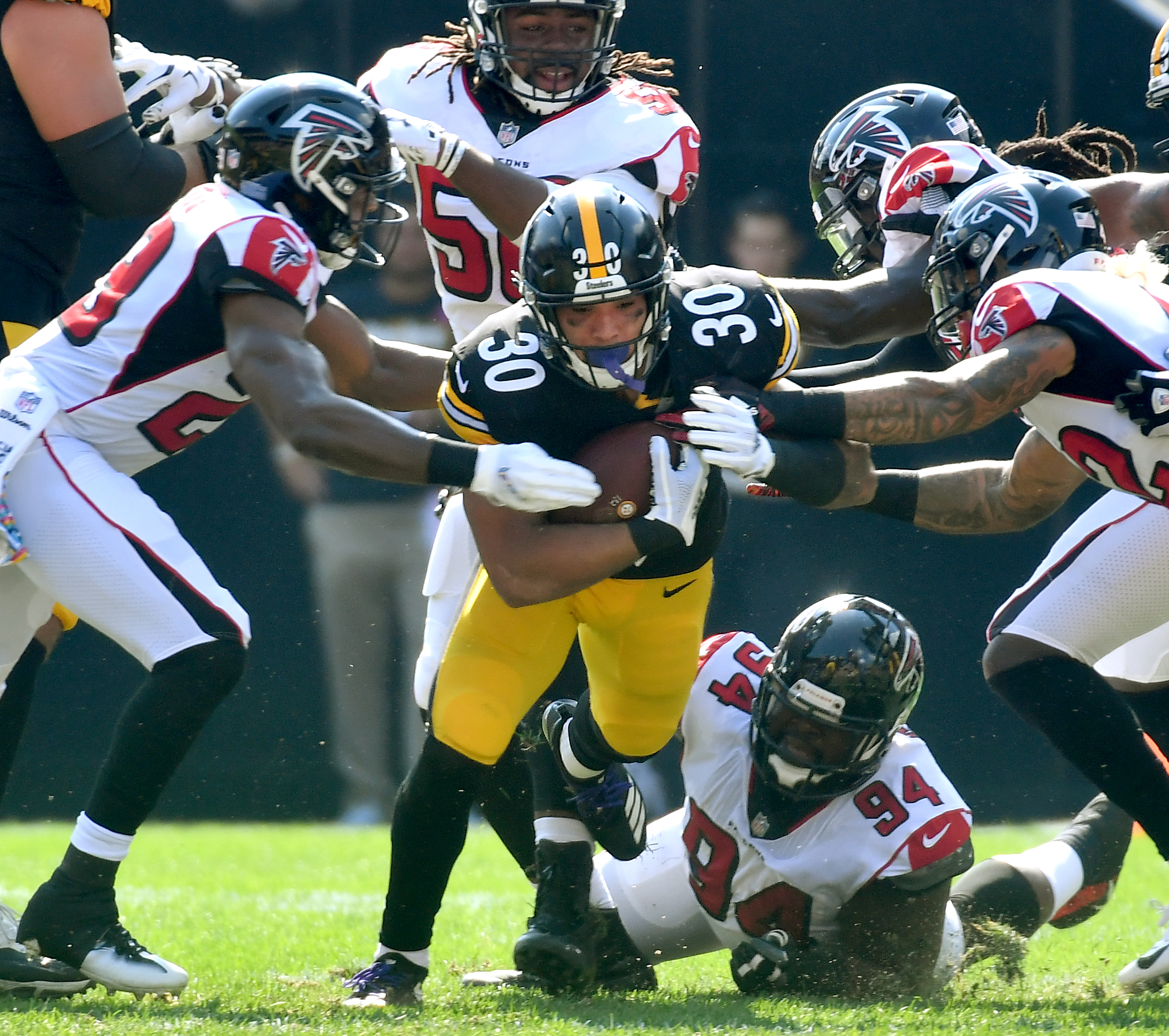 13_WIP_1011 October 11, 2018 • 2933 × 2600 • 13_WIP_1011 Steelers running back James Conner carries against the Falcons in the first quarter, Sunday, Oct. 7, 2018, at Heinz Field. (Matt Freed/Post-Gazette)