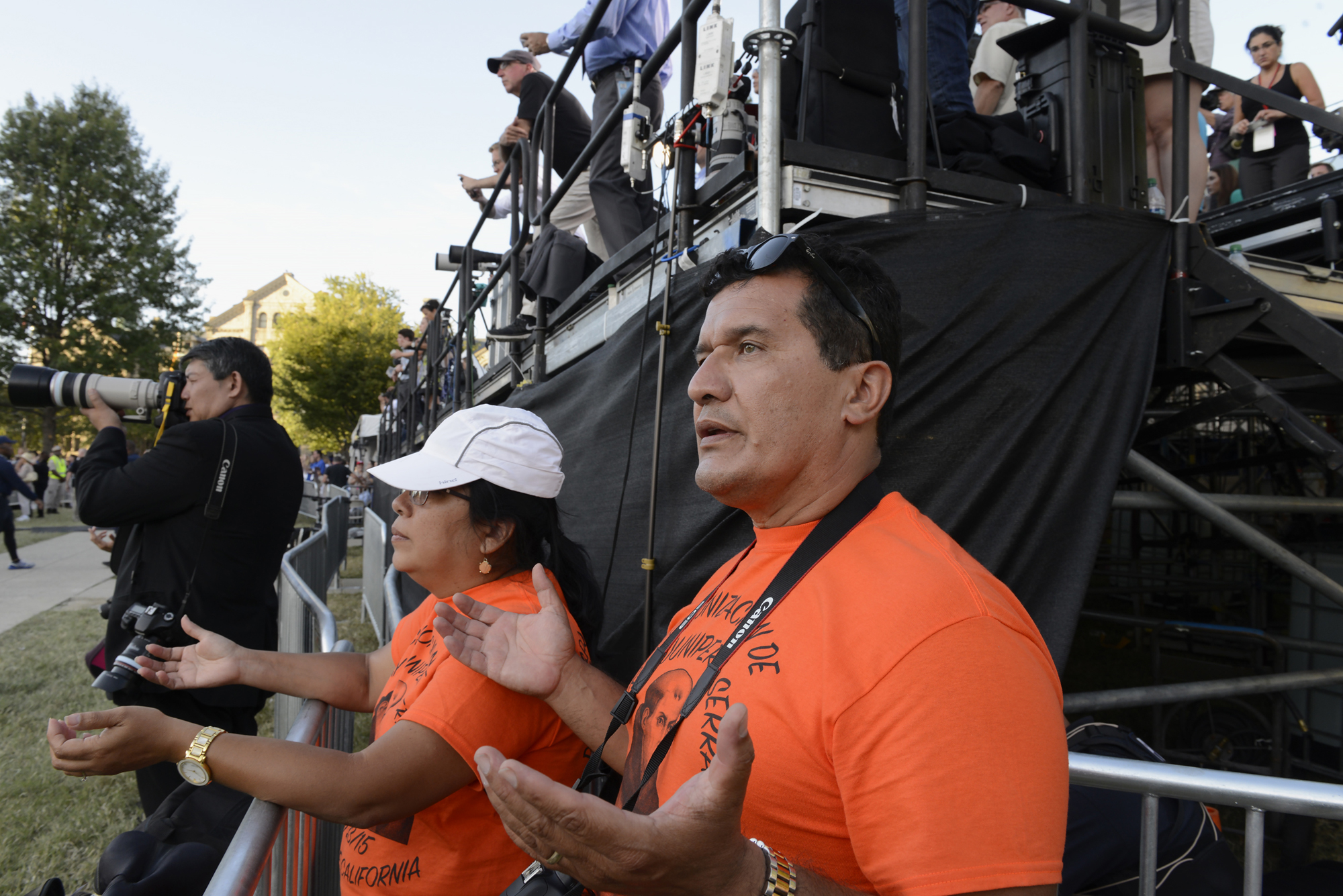 Mass-goers stand near the media rise during the canonization Mass for Junipero Serra at the Basilica of the National Shrine of the Immaculate Conception Wednesday.