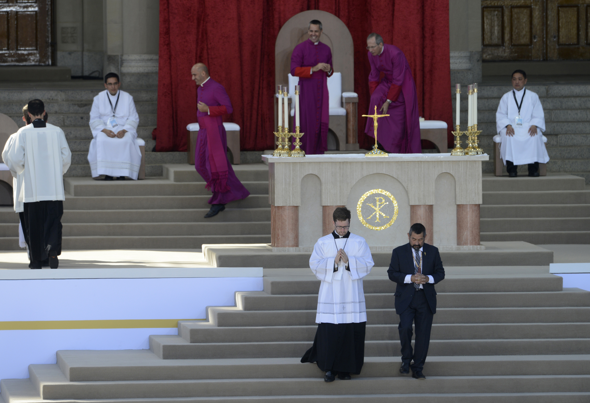 Final preparations are made before Pope Francis arrives at the Basilica of the National Shrine of the Immaculate Conception for the canonization Mass for Junipero Serra on Wednesday.