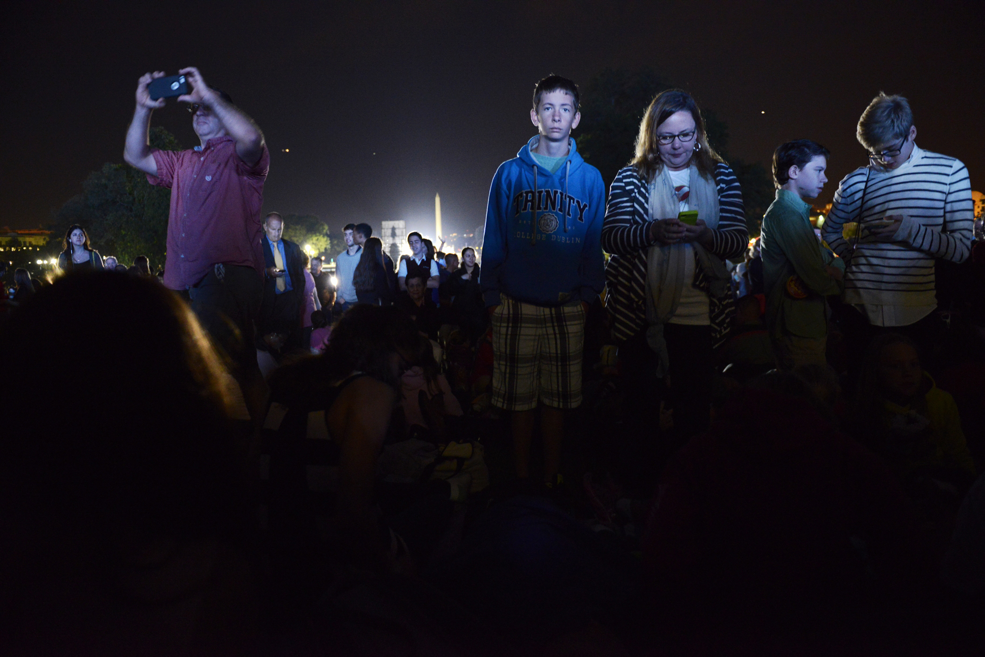 A crowd gathers on the West Front Lawn of the U.S. Capitol before Pope Francis addresses Congress on Thursday.