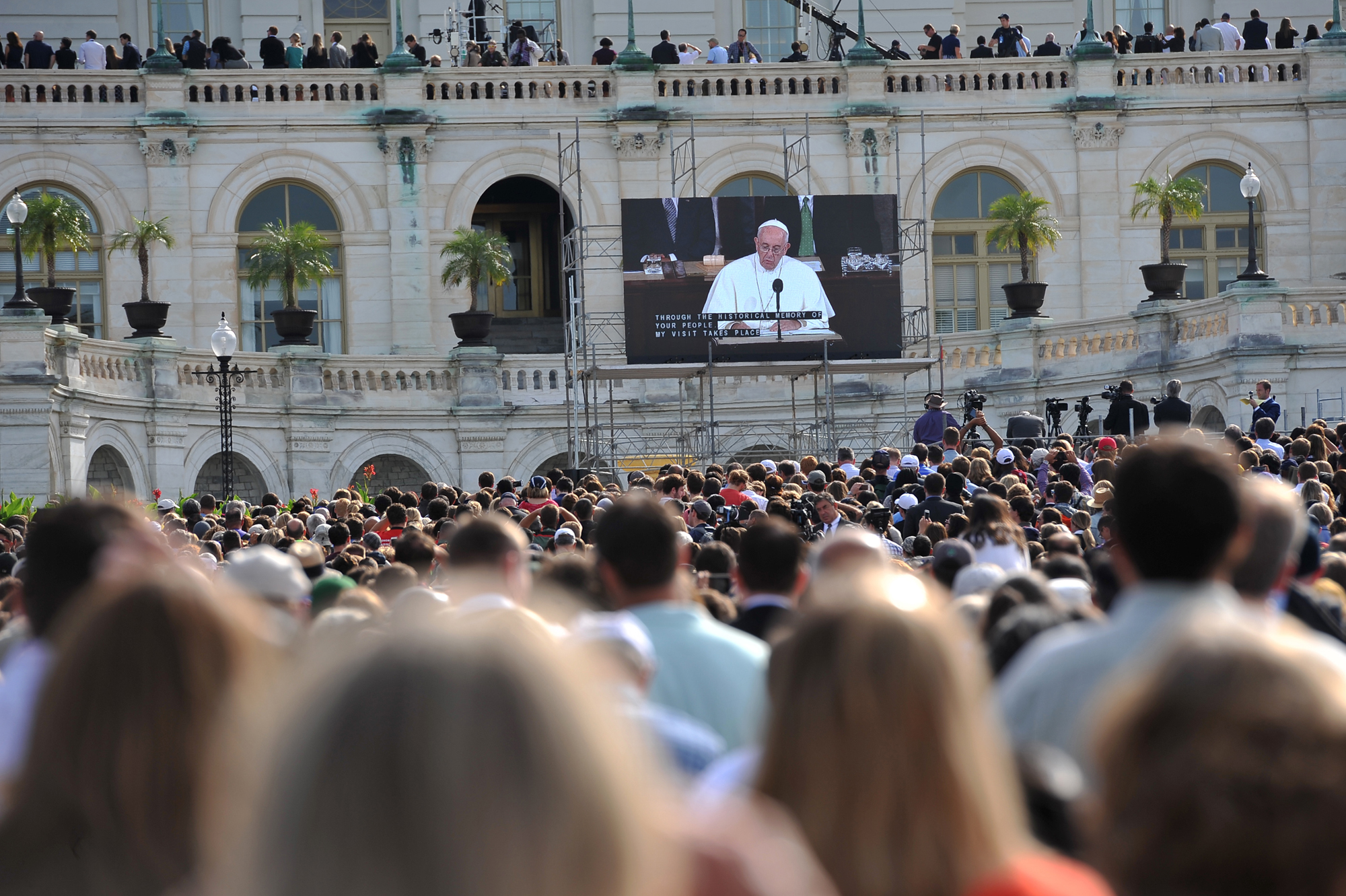 Crowds pack onto the West Front Lawn to hear Pope Francis address Congress during his visit to Washington, D.C., on Thursday.