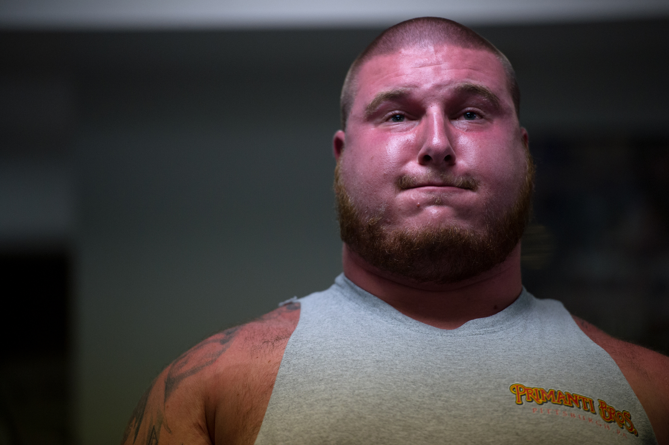 Michael Grimm of Bethel Park deadlifts Friday, Nov. 3, 2017, at Jezioro’s Gym in Bethel Park. Grimm, a former football player, is now powerlifting. In August, he broke three world records for the International Powerlifting Association, including deadlifting 740-pounds. (Rebecca Droke/Post-Gazette)