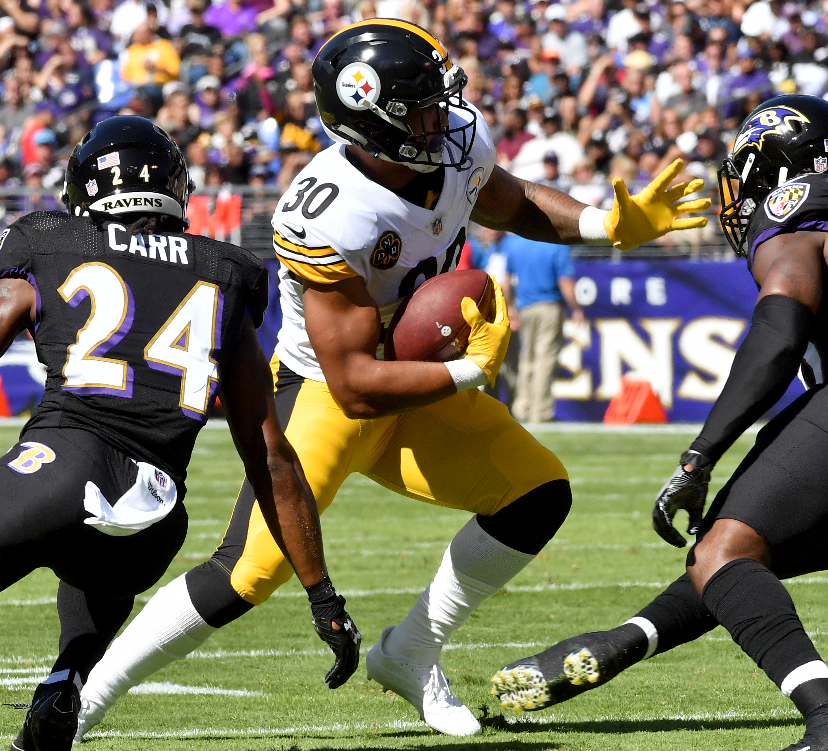 20171001mfsteelersports11 October 1, 2017 • 2867 × 2600 • 20171001mfsteelersports11 Steelers James Conner carries in front of Ravens Brandon Carr in the first quarter Sunday, October 1, 2017 at M&T Bank Stadium in Baltimore. (Matt Freed/Post-Gazette)