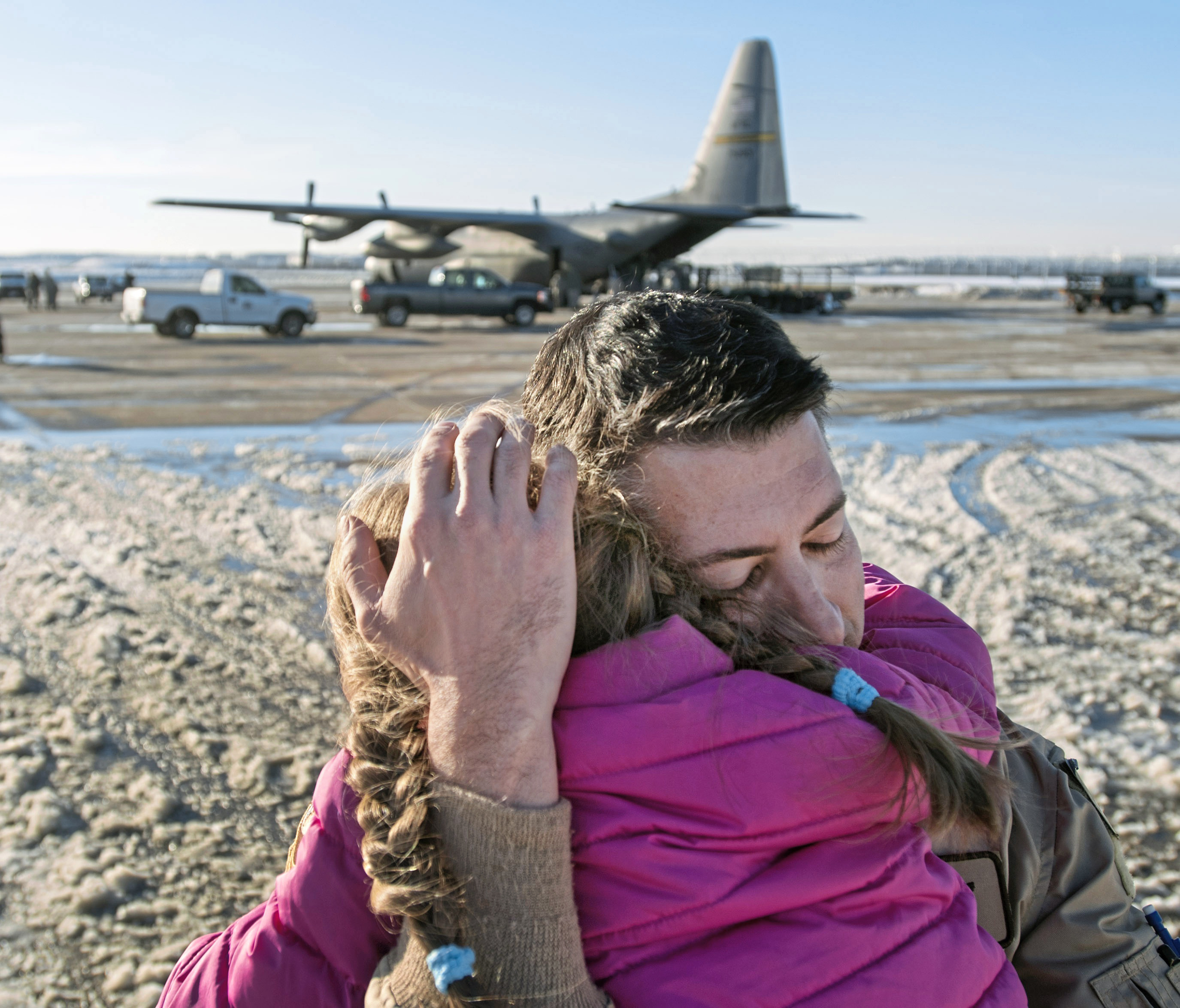 20180119scC130-05-2cc January 19, 2018 • 2750 × 2350 • 911th Airlift Wing, along with four C-130H cargo aircraft, return home for the last time Klaire Hayden, 5, of North Fayette hugs her father Capt. Brice Hayden. (Steph Chambers/Post-Gazette)