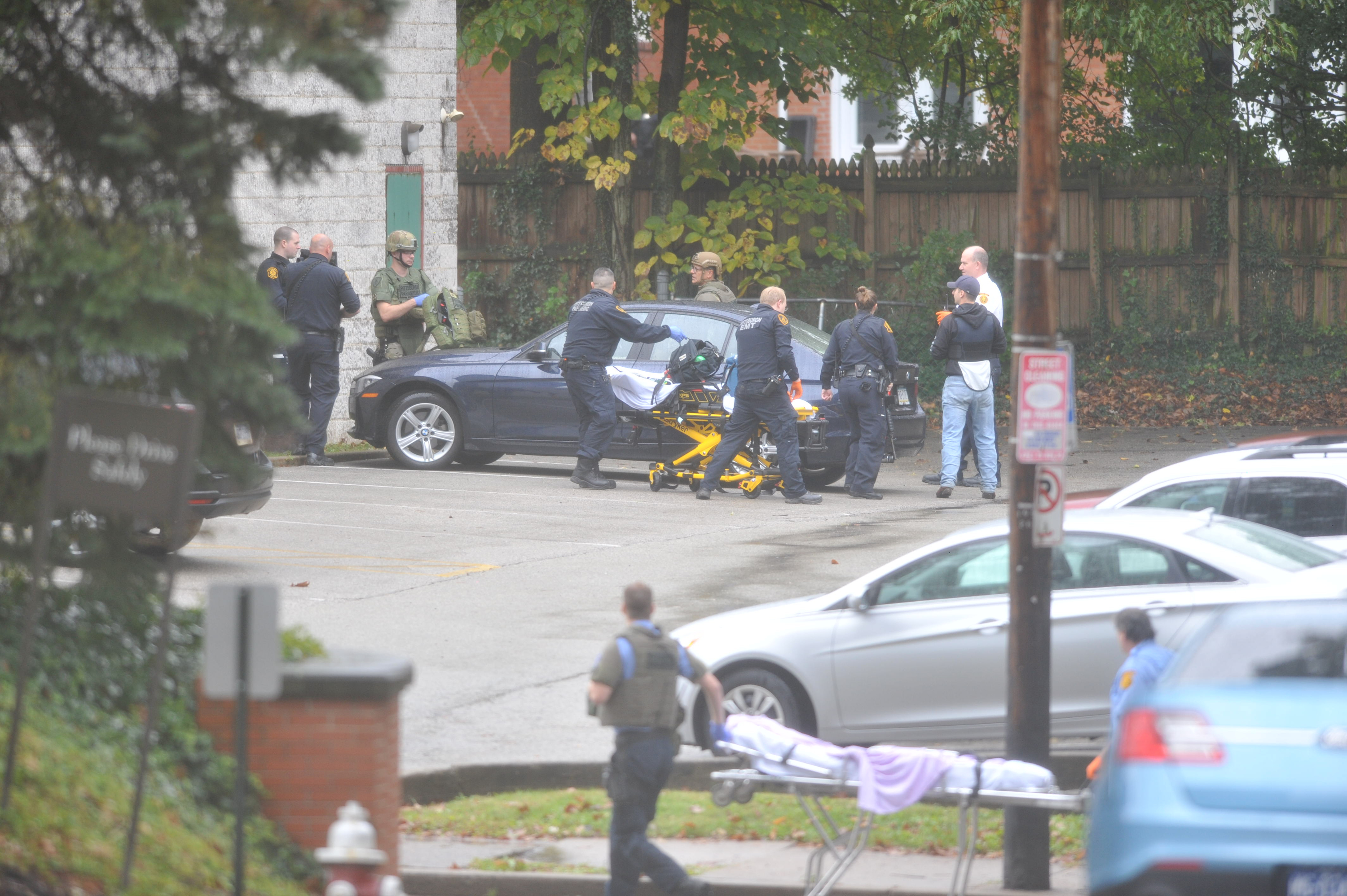 SS_20181027Shooting02 October 27, 2018 • 3000 × 1996 • Multiple fatalities at Pittsburgh synagogue mass shooting Police and medical personel gather on the side of Tree of Life Congregation synagogue on Saturday, Oct. 27, 2018, in Squirrel Hill. (Andrew Stein/Post-Gazette)