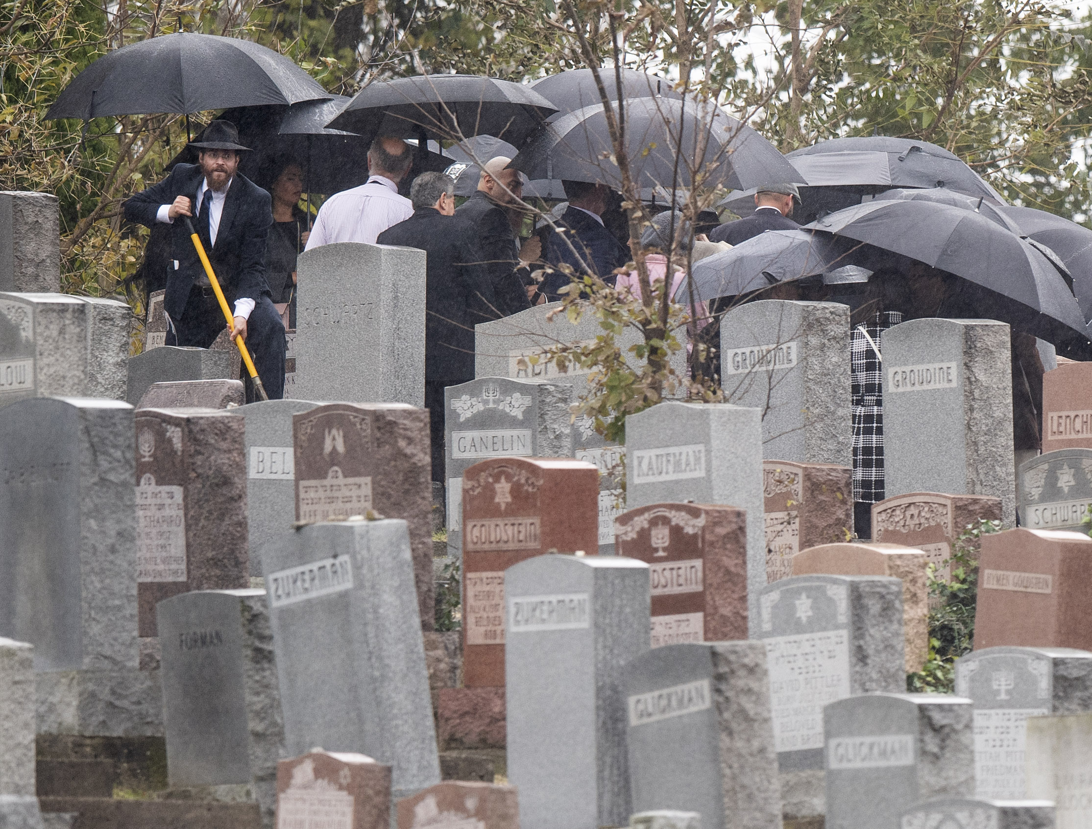 Mourners gather during the interment of Irving Younger, 69, of Mount Washington on Wednesday, Oct. 31, 2018, at Shaare Torah Cemetery in Carrick. Younger was one of 11 people who were killed after a mass shooting at Tree of Life synagogue on Saturday, Oct. 27, 2018, in Squirrel Hill. (Steph Chambers/Post-Gazette)