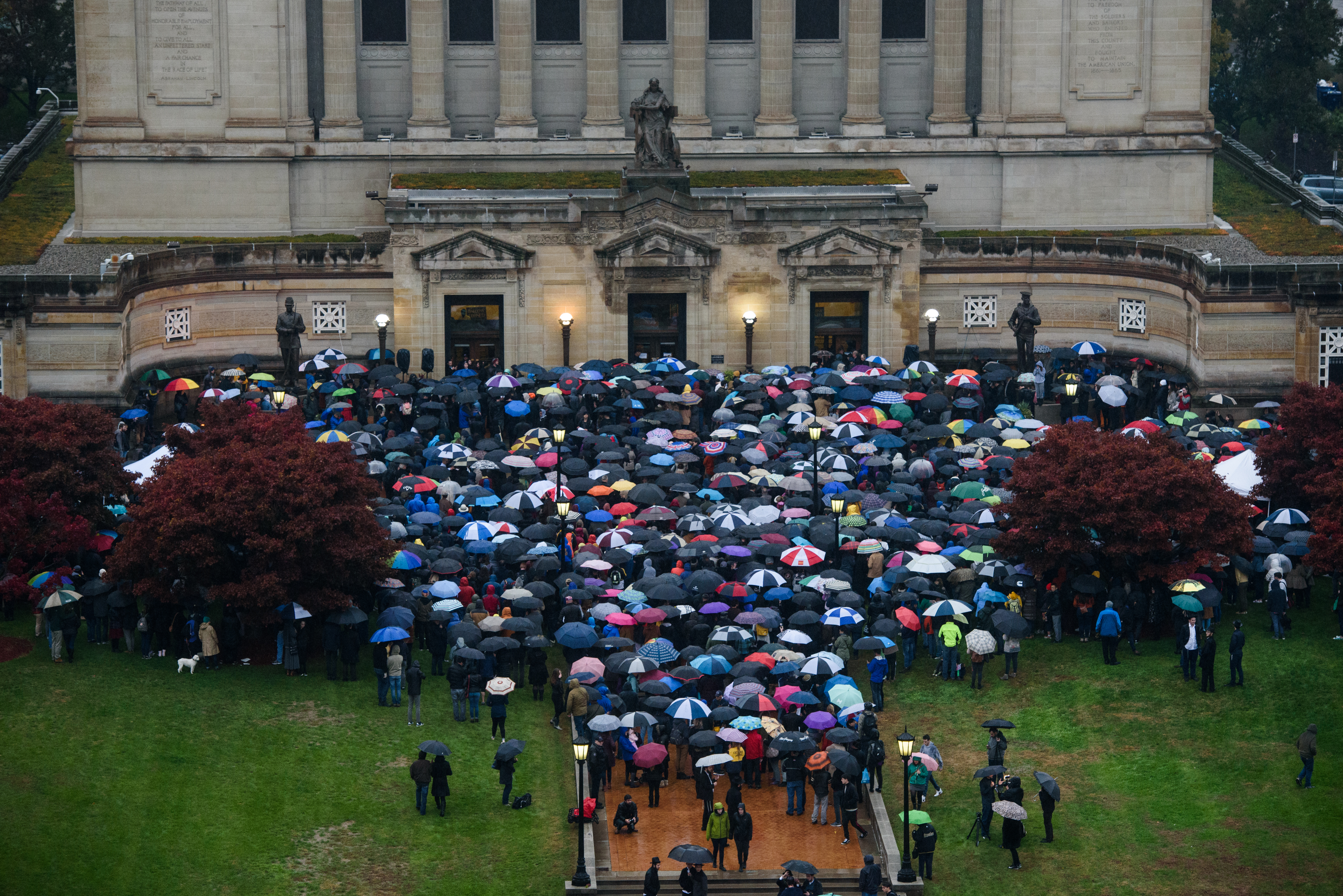 Community gathers for memorial for synagogue shooting in Pittsburgh’s Squirrel Hill October 29, 2018 • 3900 × 2603 • A portrait of the ‘darkest day in Pittsburgh’s history’ People spill out the vigil, Sunday, Oct. 28, 2018, at Soldiers & Sailors Memorial Hall and Museum in Oakland. (Stephanie Strasburg/Post-Gazette)