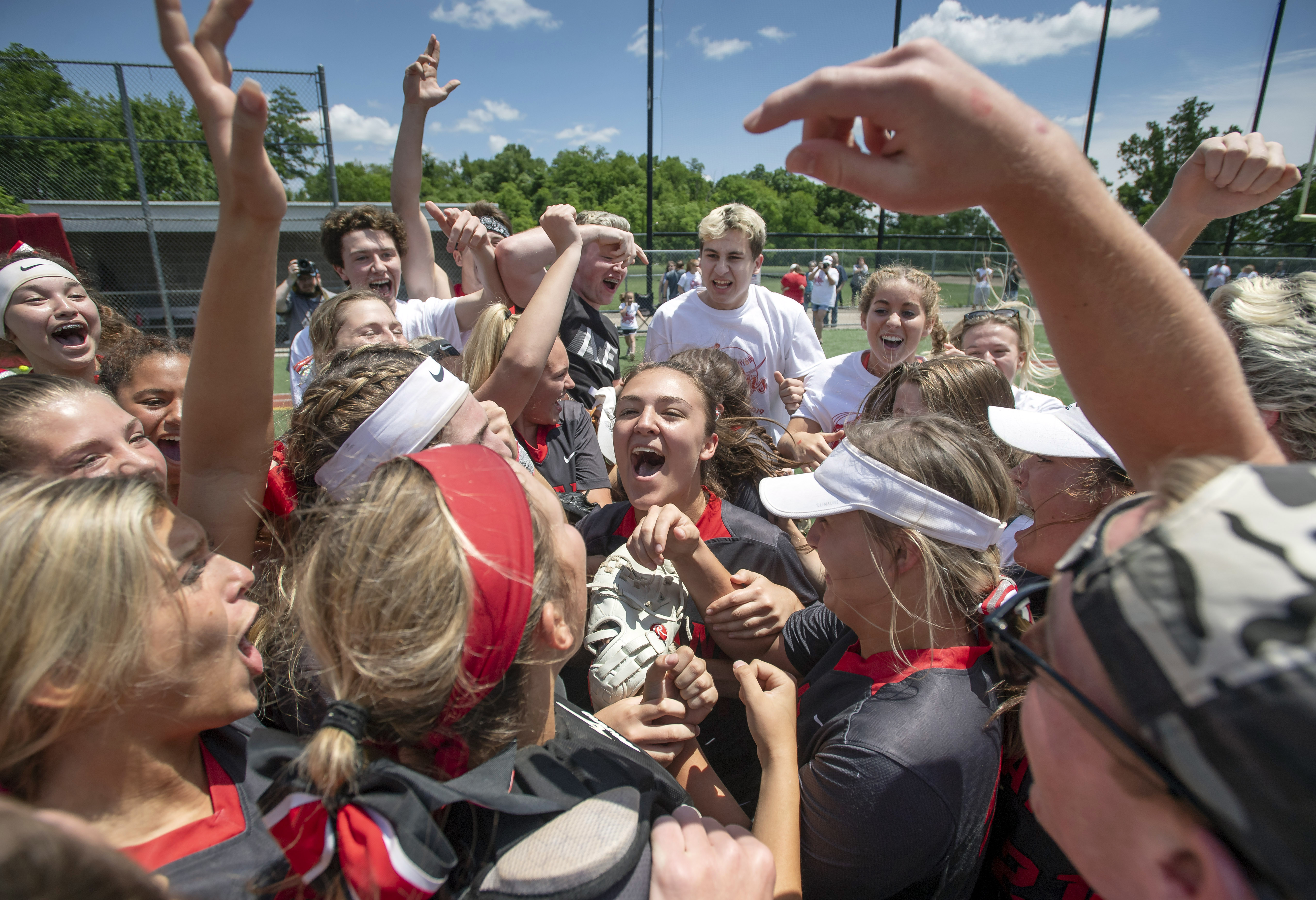 20190531scWPIAL5A_01 June 6, 2019 • 5428 × 3712 • 20190531scWPIAL5A_01 West Allegheny celebrates with their student section after beating Connellsville, 3-2, during the WPIAL 5A championship on Friday, May 31, 2019, at Peters Township High School. (Steph Chambers/Post-Gazette)