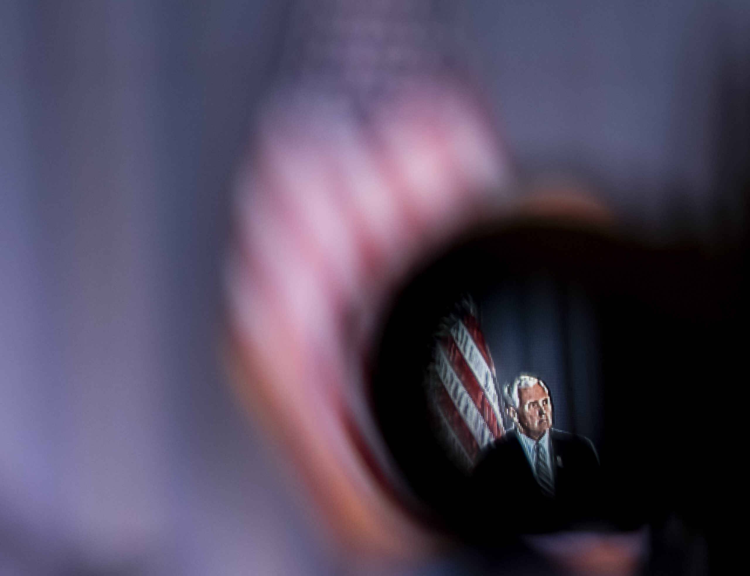Seen through a television camera, Vice President Mike Pence participates in a session with faith and community leaders on Friday, June 12, 2020, at Covenant Church of Pittsburgh in Wilkinsburg. Pence’s visit is the first stop part of the Great American Comeback Tour,” organized by America First Policies, a nonprofit that promotes the policy agenda of Donald Trumps re-election campaign. The tour’s guest speakers will discuss how businesses are recovering after the COVID-19 pandemic. (Steph Chambers/Post-Gazette)