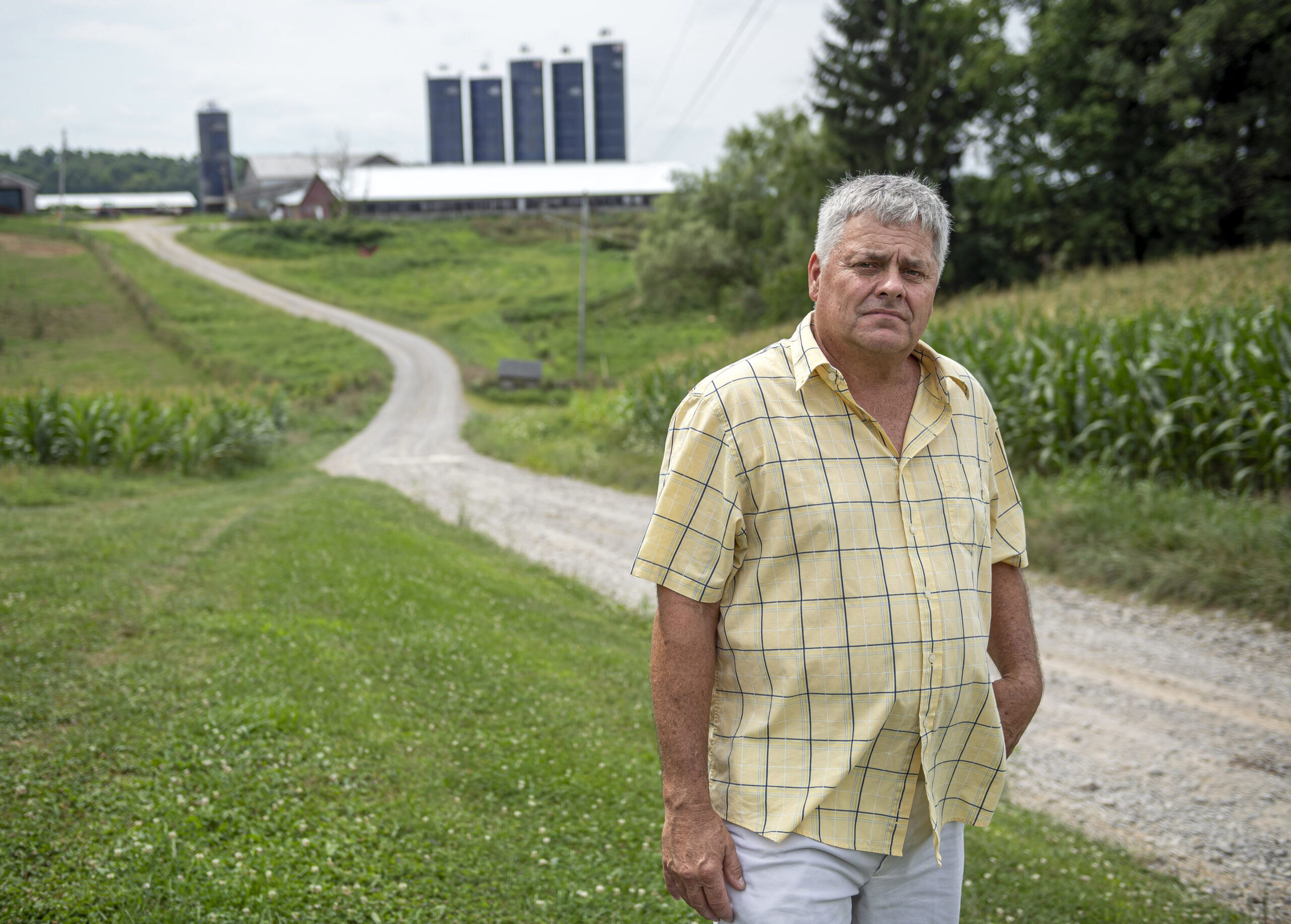Rick Telesz, a Lawrence County farmer and Trump voter who says his third generation family farm has taken a hit from Trump’s tariffs, stands on his 500-acre property on Wednesday, Aug. 12, 2020, in Volant. Telesz will speak at the Democratic National Convention next week on behalf of Joe Biden. (Steph Chambers/Post-Gazette)