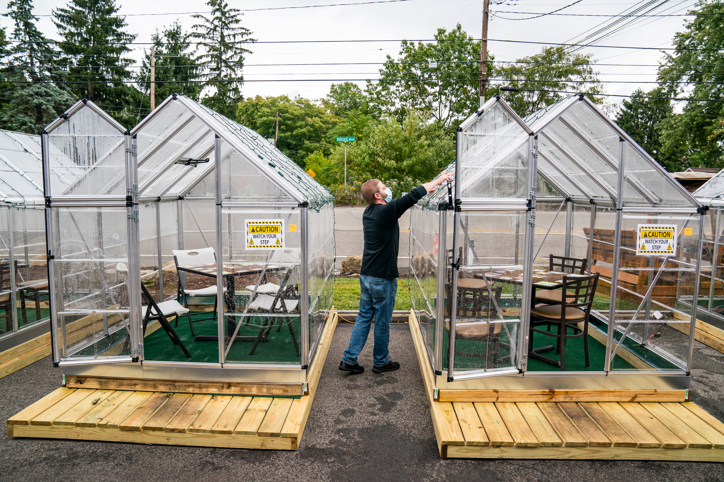 20201002arDiningOutdoors October 12, 2020 • 2400 × 1599 • Photos of the Week, Oct. 2-11, 2020 Rob Teare, a server at North Park Lounge, wipes rain off of individual table enclosures on Friday, Oct. 2, 2020, in McCandless. The enclosures feature one table each and include a space heater. (Andrew Rush/Post-Gazette)