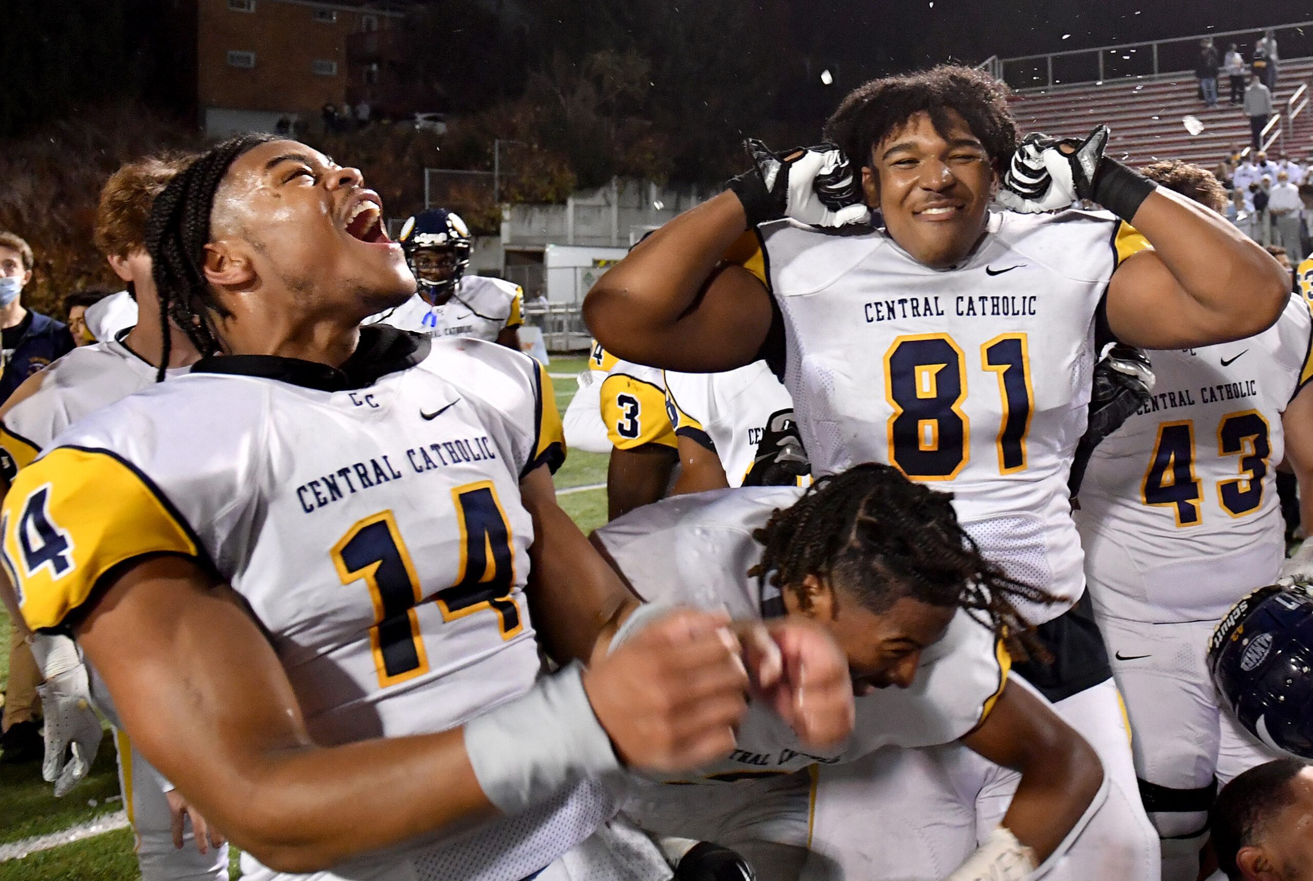 Week in photos Nov 12 2020 09 November 12, 2020 • 2560 × 1719 • Week in photos Nov. 6 to Nov. 12, 2020 Central Catholic’s Eric Benson and Bralen Henderson celebrate after defeating North Allegheny in the WPIAL Class 6A championship at Martorelli Stadium Friday, Nov. 6, 2020, in Pittsburgh. (Matt Freed/Post-Gazette)