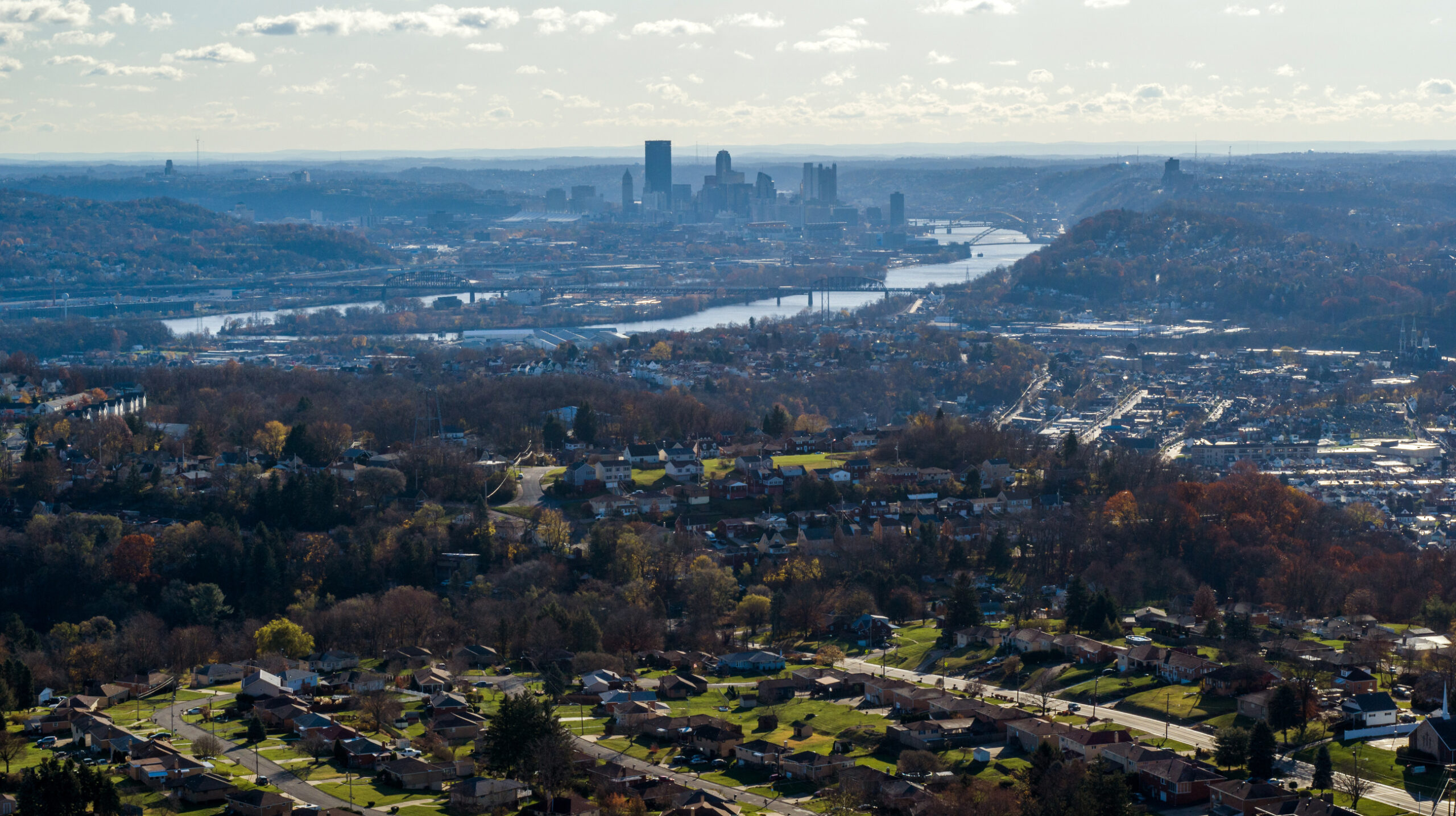 20201116arKennedyViews November 20, 2020 • 2560 × 1436 • The week in photos: Nov. 13-19 A distant view of Downtown Pittsburgh viewed from an aerial photo taken from Kennedy Township. on Monday, Nov. 16, 2020. (Andrew Rush/Post-Gazette)