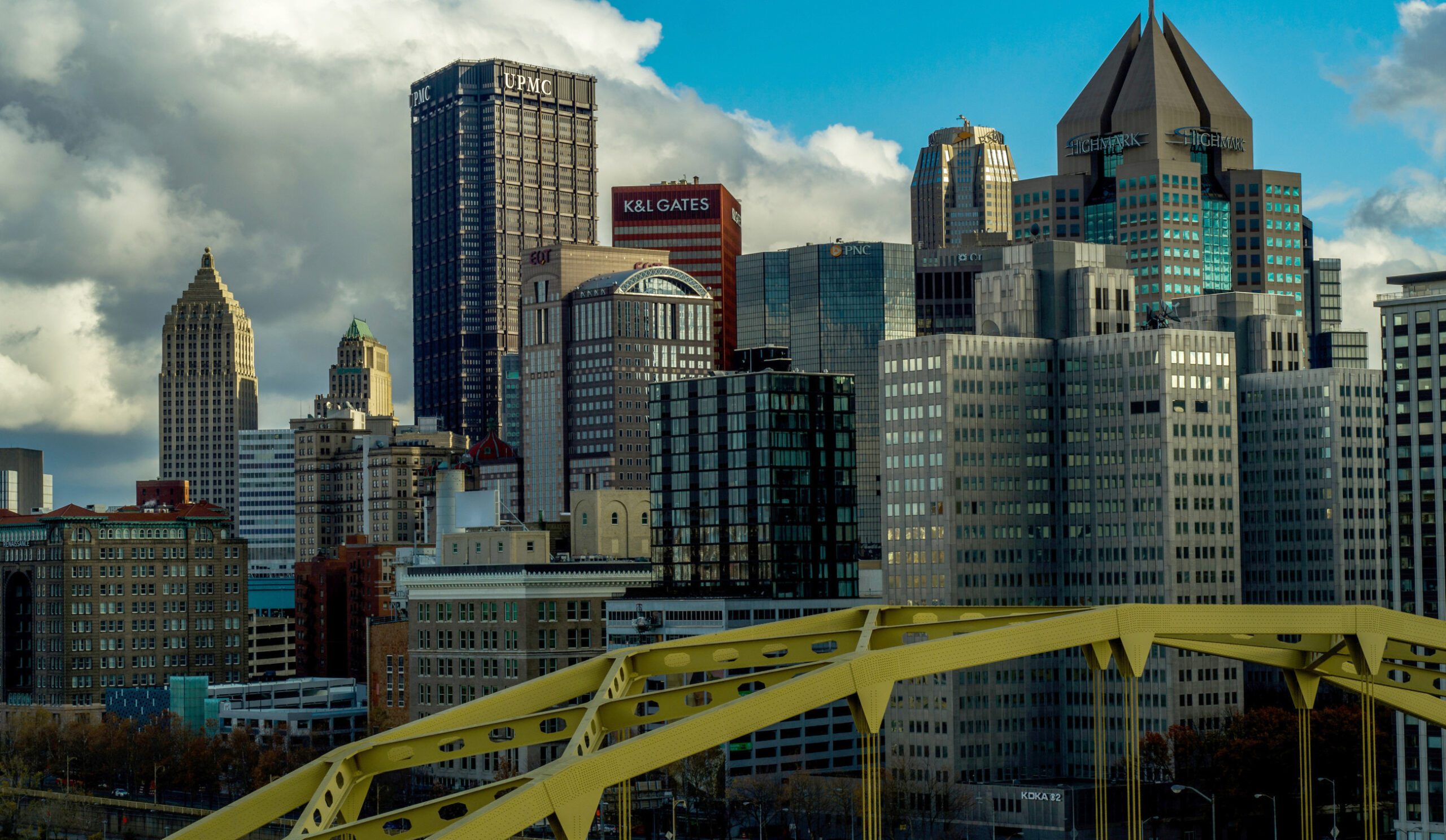 Downtown Pittsburgh photographed on Tuesday, Nov. 17, 2020. (Andrew Rush/Post-Gazette)