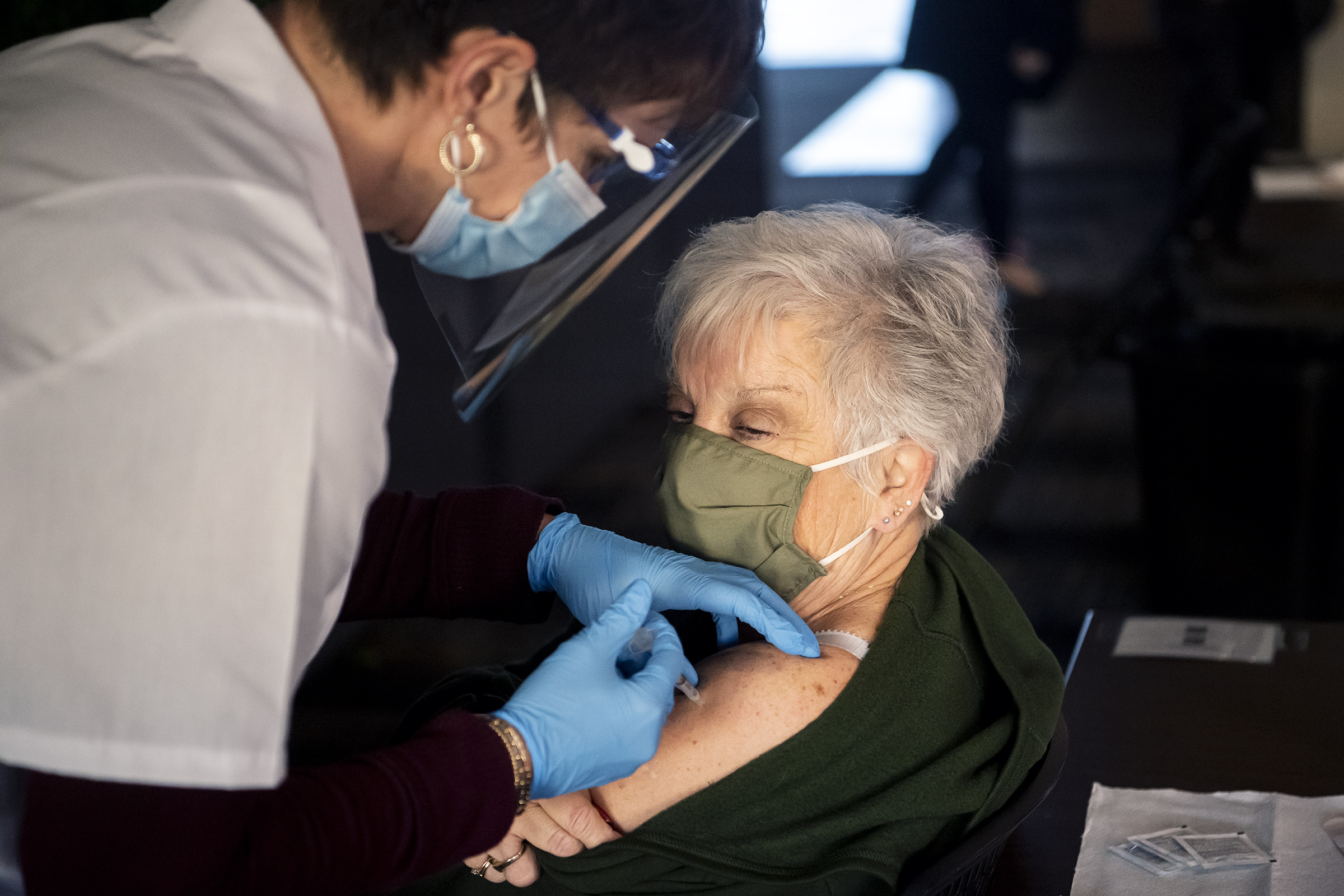 Heinz Field Vaccine March 3, 2021 • 2400 × 1600 • Week in Photos: Feb. 28-March 6 Gerri Rush, of Swisshelm Park, receives the Pfizer-BioNTech COVID-19 vaccine at a clinic organized by Giant Eagle in partnership with the Steelers at Heinz Field, Tuesday, March 2, 2021, on the North Shore. (Alexandra Wimley/Post-Gazette)