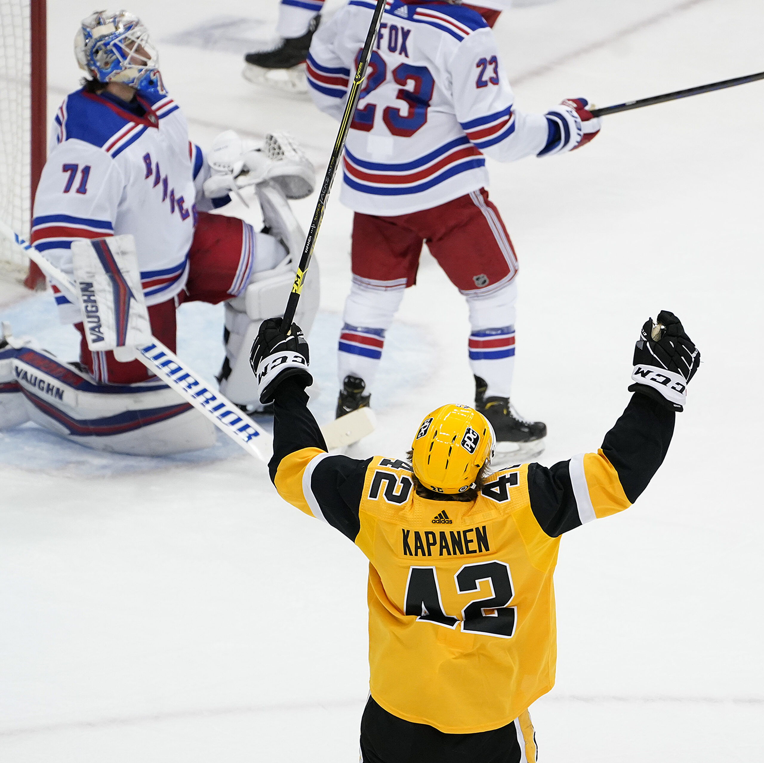 20210309pdPenguins10 March 9, 2021 • 2560 × 2556 • Week in Photos: March 7-13 Pittsburgh Penguins right wing Kasperi Kapanen celebrates after scoring against the Rangers in the second period Tuesday, March 9, 2021, at PPG Paints Arena in Pittsburgh. (Peter Diana/Post-Gazette)