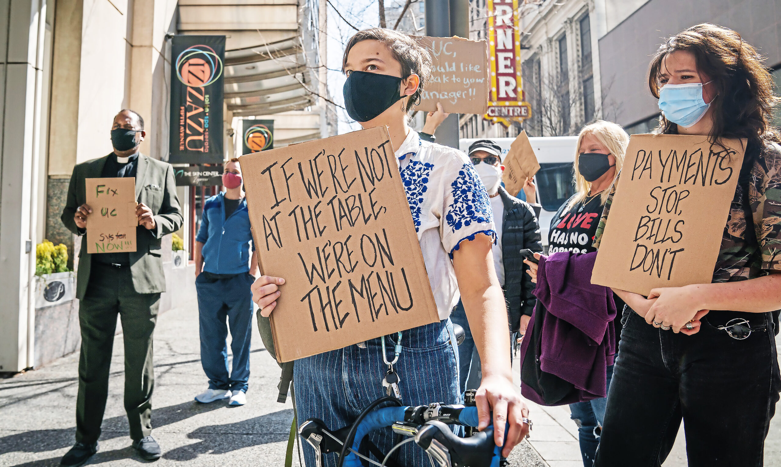 Larisa Mednis, of Bloomfield, at a rally put on by the Mon Valley Unemployed Committee and Pittsburgh Restaurant Workers Aid Group at Governor Wolf’s regional office on Wednesday, March 10, 2021, Downtown. The group was asking to “hire the workers needed to clear the unemployment backlog and handle the ongoing call and email volume.” (Andrew Rush/Post-Gazette)