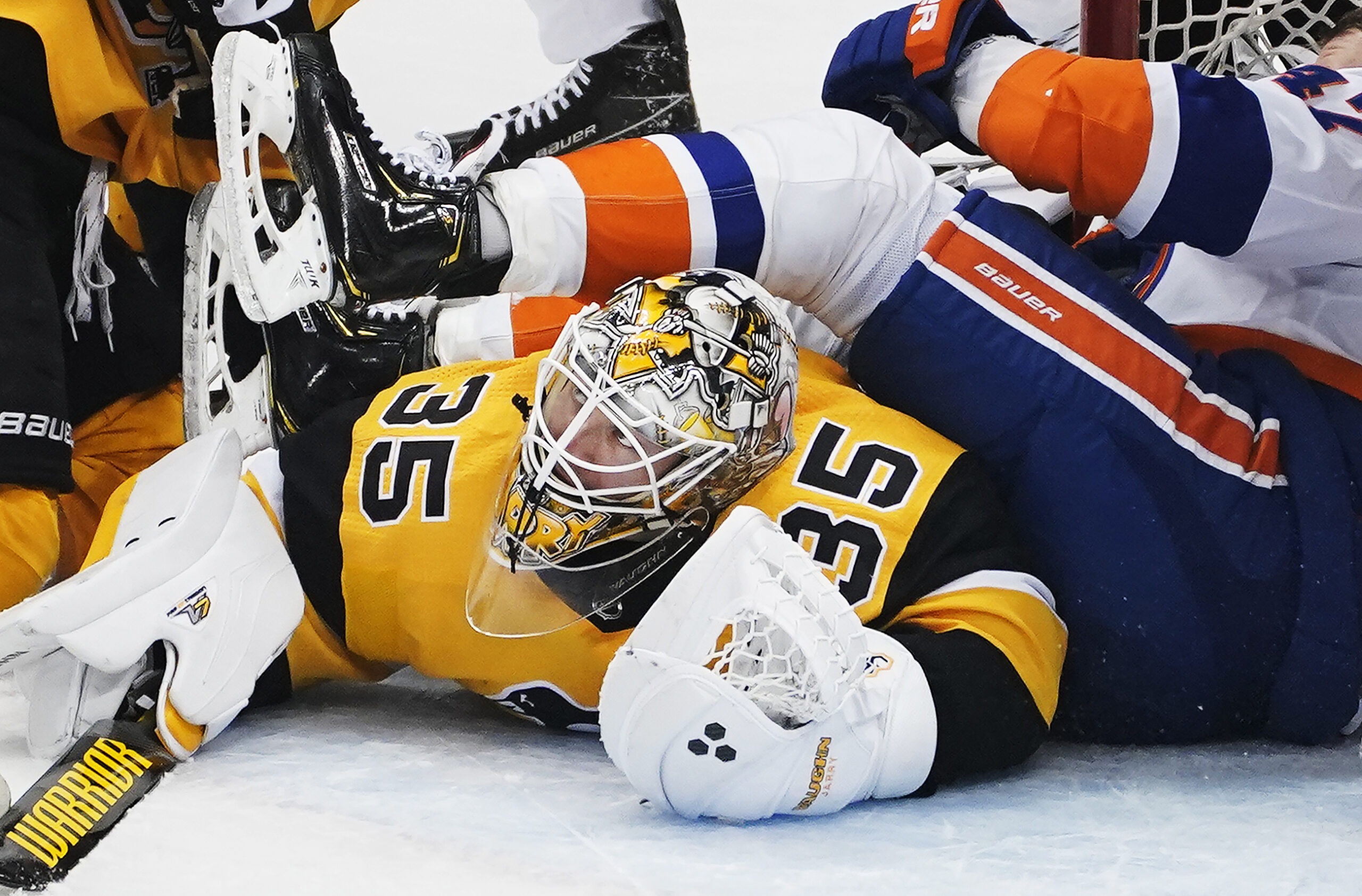 20210327pdPenguins11 March 27, 2021 • 2560 × 1685 • Week in Photos: March 21-27 Pittsburgh Penguins goaltender Tristan Jarry looks for an interference call against the Islanders Saturday, March 27, 2021, at PPG Paints Arena in Pittsburgh. (Peter Diana/Post-Gazette)