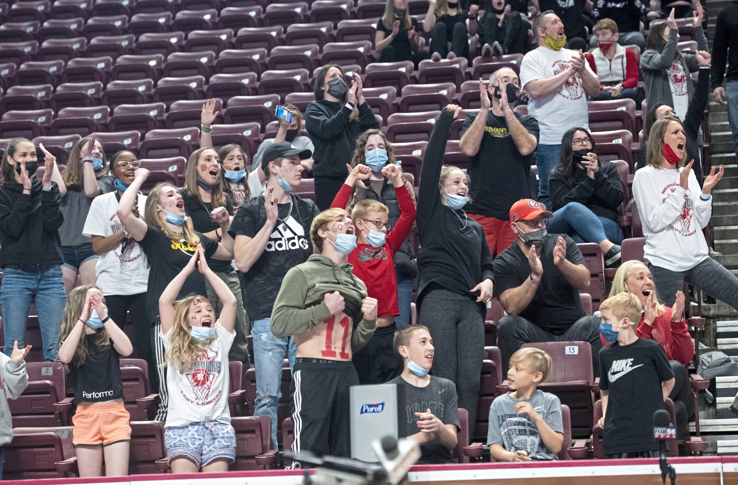 2AGirlsChampionship March 25, 2021 • 2560 × 1681 • Week in Photos: March 21-27 Neshannock’s fans cheer in the stands after their team scores during the PIAA 2A championship game against Mt. Carmel on Thursday, March 25, 2021, at Giant Center in Hershey. Neshannock lost 43-54. (Emily Matthews/Post-Gazette)