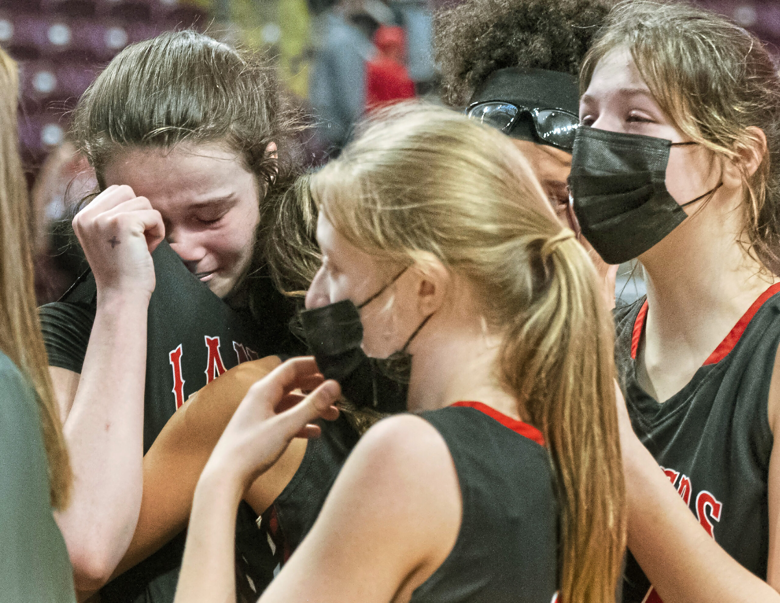 2AGirlsChampionship March 25, 2021 • 2560 × 1980 • Week in Photos: March 21-27 Neshannock’s Mairan Haggerty uses her jersey to wipe her eyes after her team lost 43-54 to Mt. Carmel in the PIAA 2A championship game on Thursday, March 25, 2021, at Giant Center in Hershey. (Emily Matthews/Post-Gazette)
