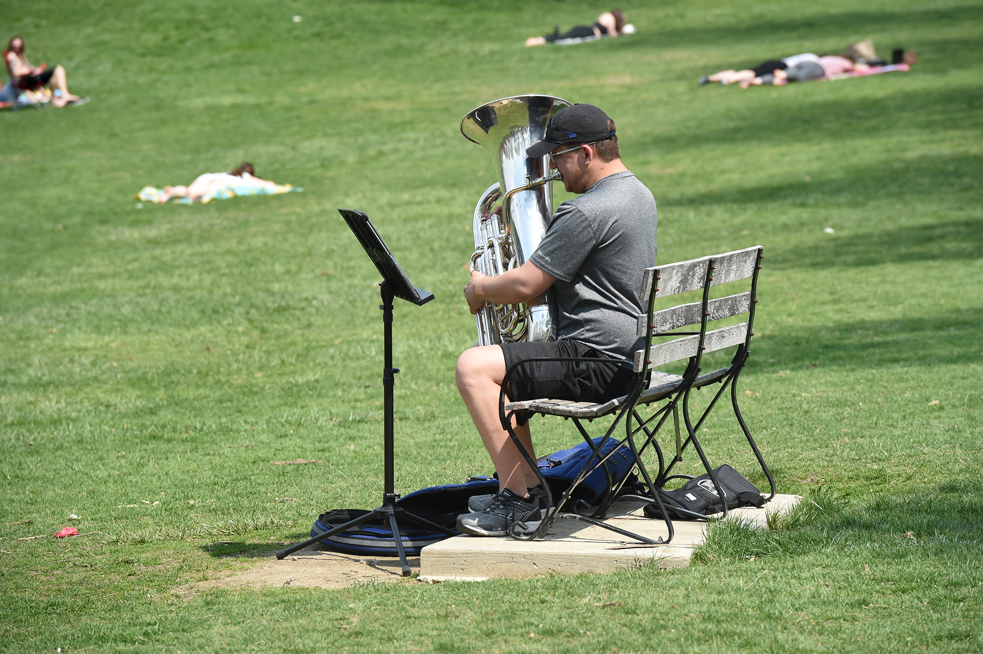 20210407ppMakingMusicLOC April 7, 2021 • 2000 × 1331 • Week in Photos: April 4-10 Michael Zech from Brighton Heights gets a little tuba practice in while waiting on a friend to play disc golf at Schenley Park Wednesday, Apr. 8, 2021 in Pittsburgh. (Pam Panchak/Post-Gazette)