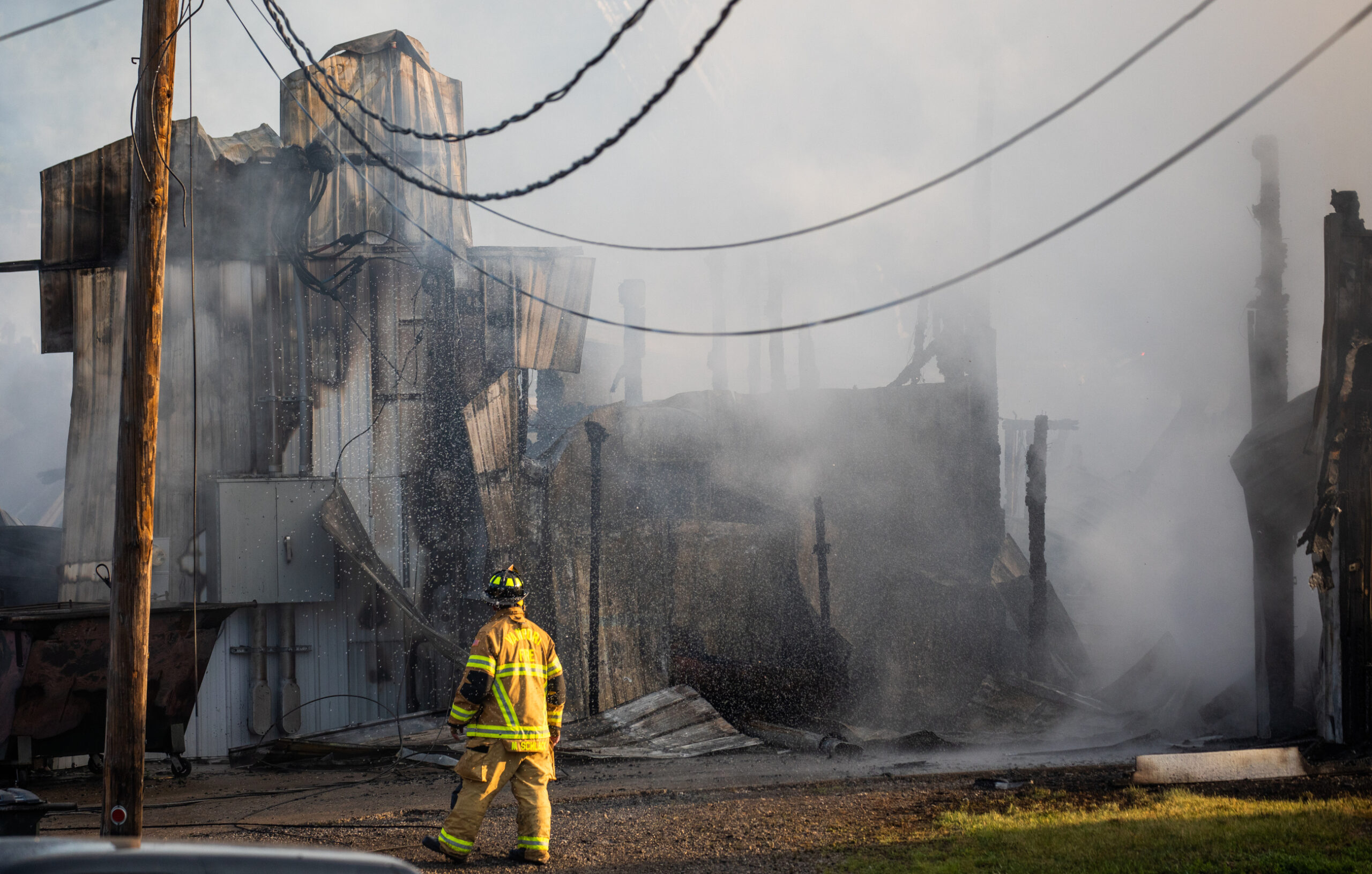 20210617arVanport June 17, 2021 • 2560 × 1631 • Week in photos: June 13-19 A firefighters on the scene of a large structure fire that destroyed Idlewood Industries on Thursday, June 17, 2021, in Vanport. (Andrew Rush/Post-Gazette)