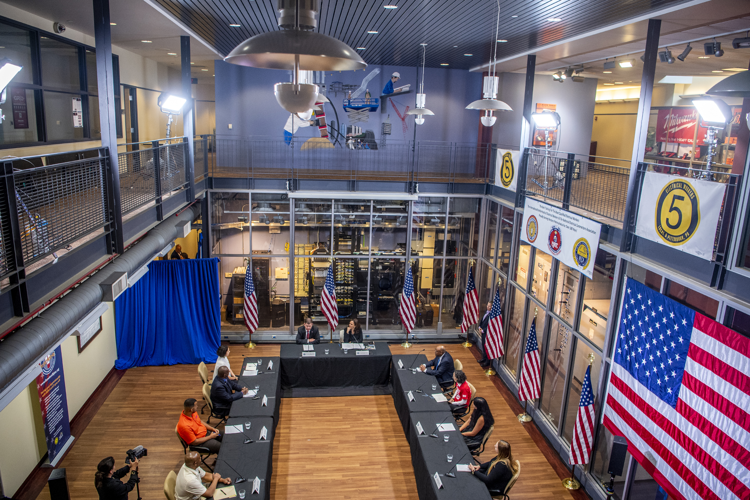 Vice President Kamala Harris in Pittsburgh June 21, 2021 • 2400 × 1600 • Week in Photos: June 20 – 26 Labor Secretary Marty Walsh and Vice President Kamala Harris lead a labor task force roundtable at the IBEW Local 5 union hall on the South Side, Monday, June 21, 2021. (Alexandra Wimley/Post-Gazette)