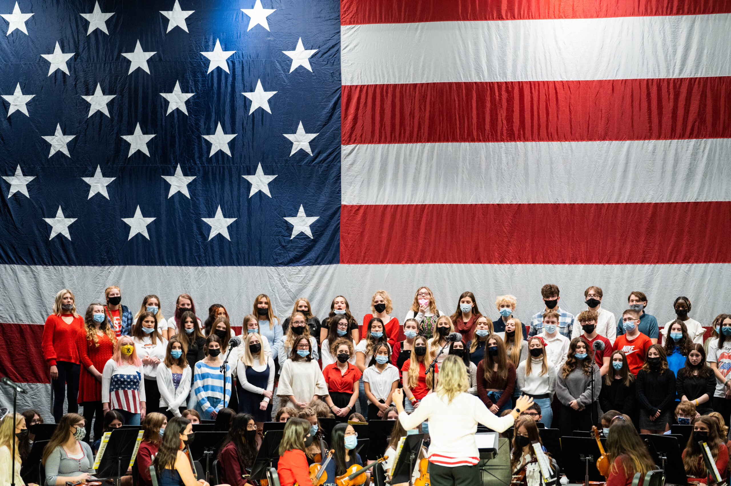 Students in the Thomas Jefferson High School choir perform during a Veterans Day Recognition/Celebration on Wednesday, Nov. 10, 2021, in Jefferson Hills. (Andrew Rush/Post-Gazette)