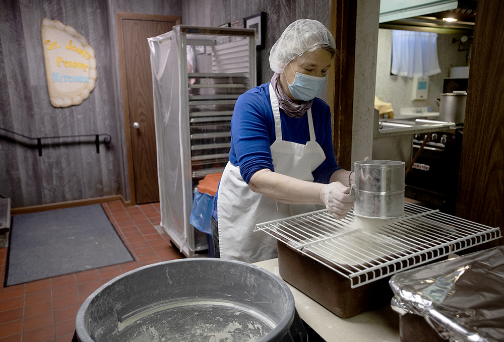 20210303ppStJohnsPyrohyLOC March 3, 2021 • 1000 × 679 • 20210303ppStJohnsPyrohyLOC Diane Vargo from Hazelwood sifts the flour that will make the next batch of dough for the next batch of pyrohy Wednesday, Mar. 3, 2021 Pittsburgh. (Pam Panchak/Post-Gazette)