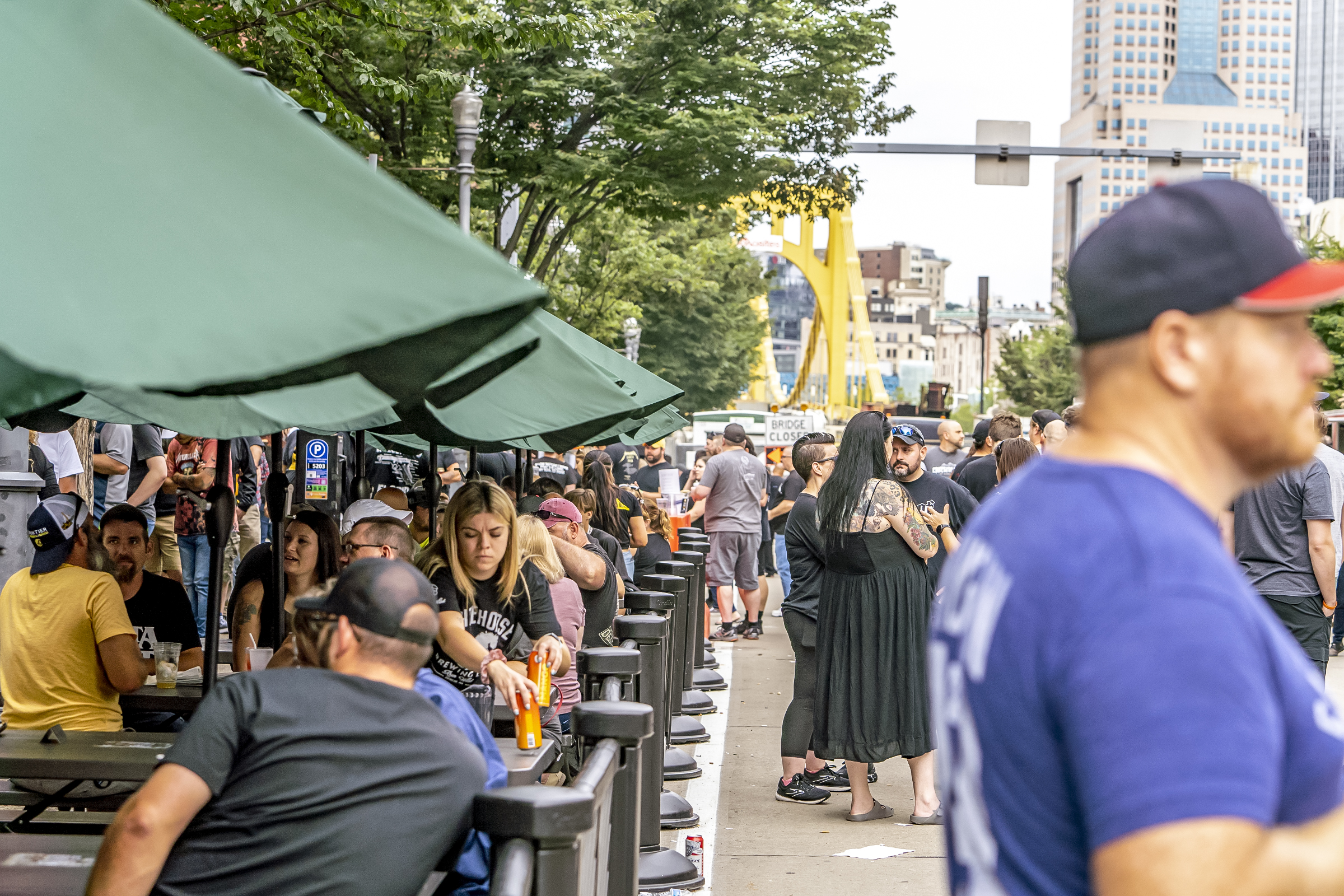 People eat and drink at MikeÕs Beer Bar ahead of a Metallica concert at PNC Park on the North Shore, Sunday, August 14, 2022. (Alexandra Wimley/Post-Gazette)