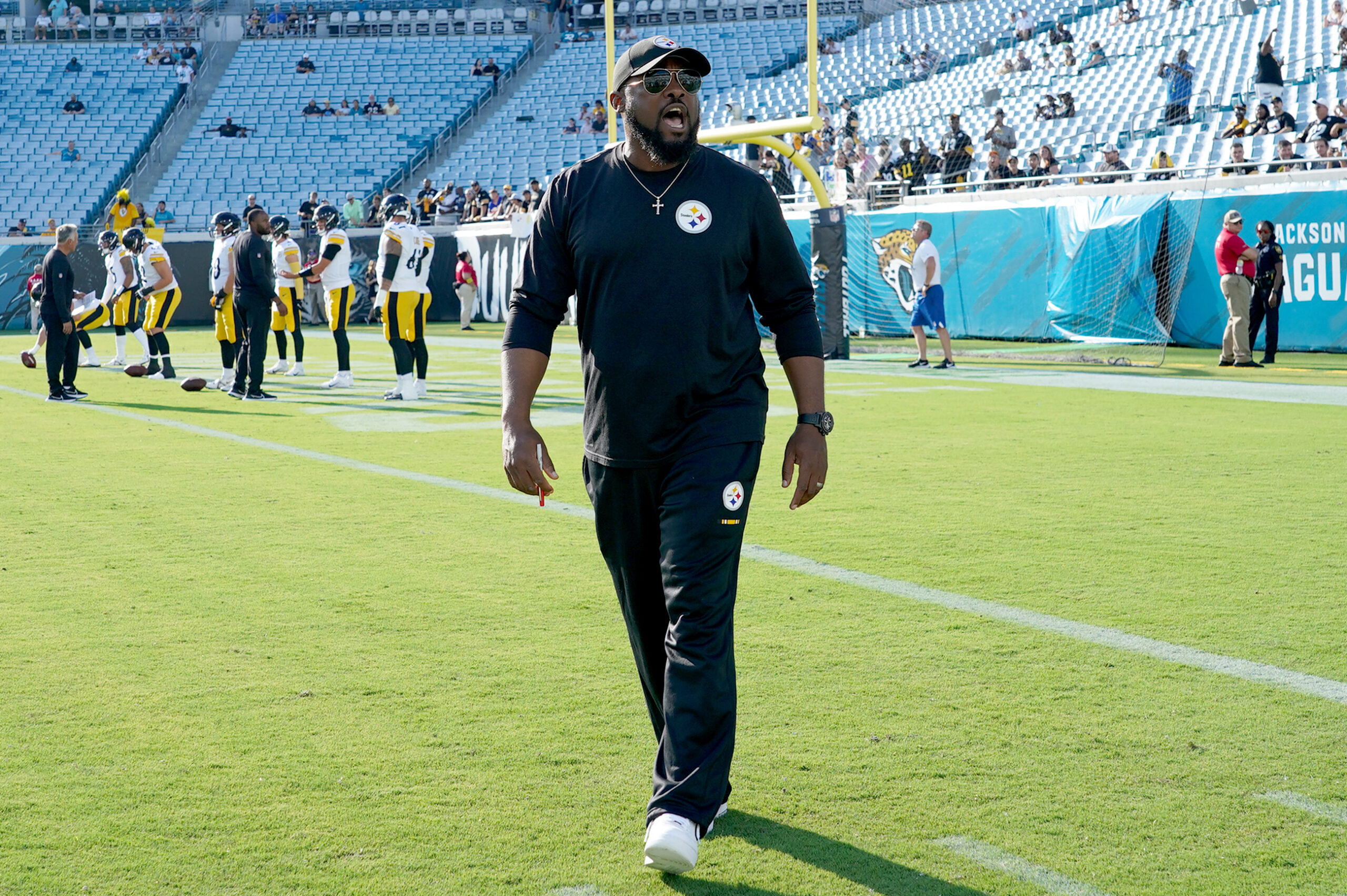 ss_Preseason Steelers Aug. 20, 2022 09 August 20, 2022 • 2560 × 1703 • Week in photos: Aug.14-20, 2022 Steelers head coach Mike Tomlin acknowledges the fans as he enters the field for warmups before taking on the Jaguars, Saturday, Aug. 20, 2022, at TIAA Bank Field. (Matt Freed/Post-Gazette)