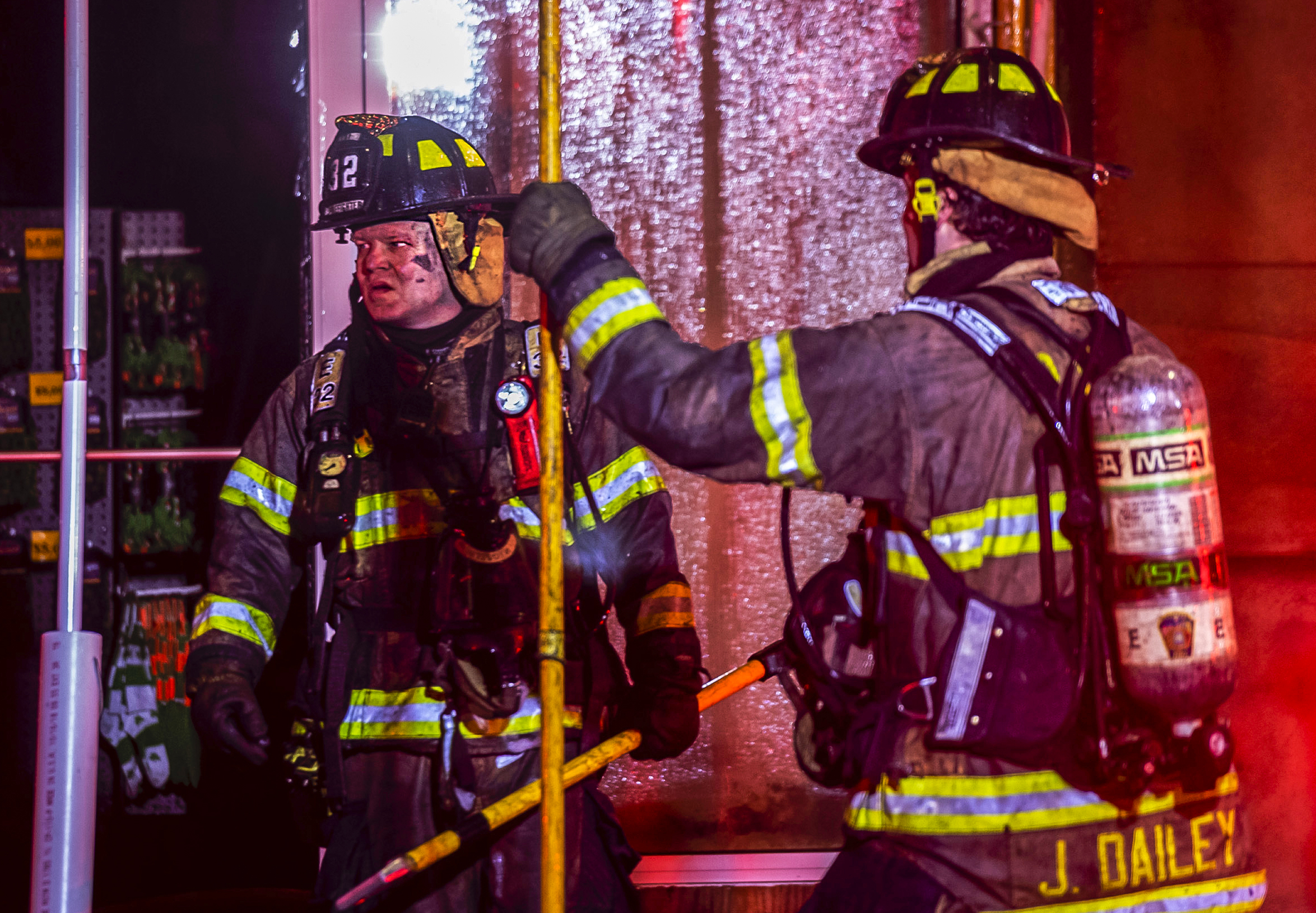 City of Pittsburgh Firefighters respond to a three alarm fire Wednesday. (Michael M. Santiago/Post-Gazette)