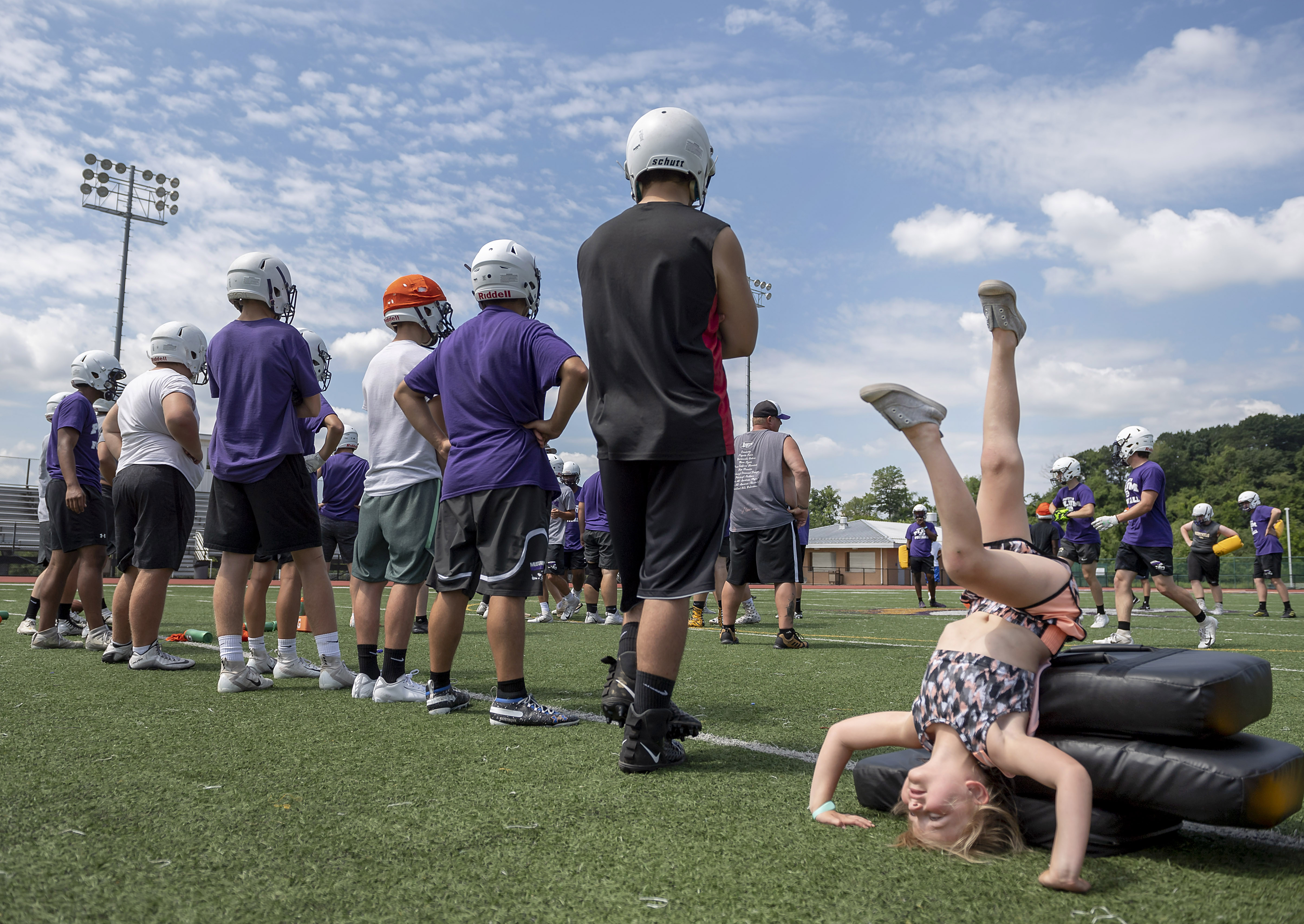 SSFootballTab2019_WideEdit_11 August 16, 2019 • 4815 × 3412 • SSFootballTab2019_WideEdit_11 Lyvia Morgan, 6, daughter of Plum head coach Matt Morgan, works on her cheerleading during football practice on Wednesday, June 26, 2019, at Plum High School. (Steph Chambers/Post-Gazette)