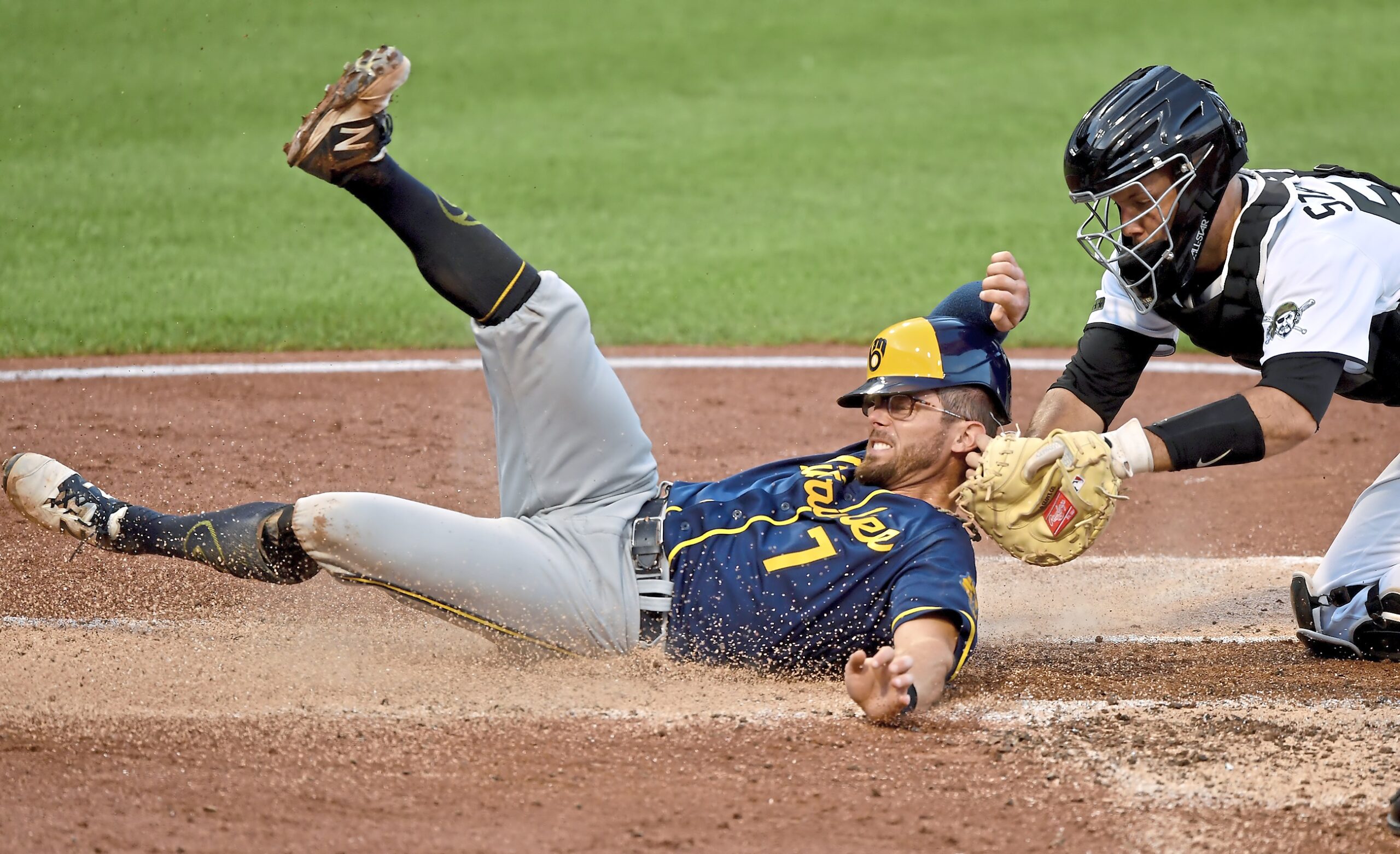 Week in photos July 24 to July 30 107 July 30, 2020 • 2560 × 1562 • Week in photos July 24 to July 30 107 Pirates catcher Jacob Stallings tags out Brewers shortstop Eric Sogard with an assist from left fielder Bryan Reynolds in the third inning at PNC Park Wednesday, July 29, 2020, in Pittsburgh. (Matt Freed/Post-Gazette)