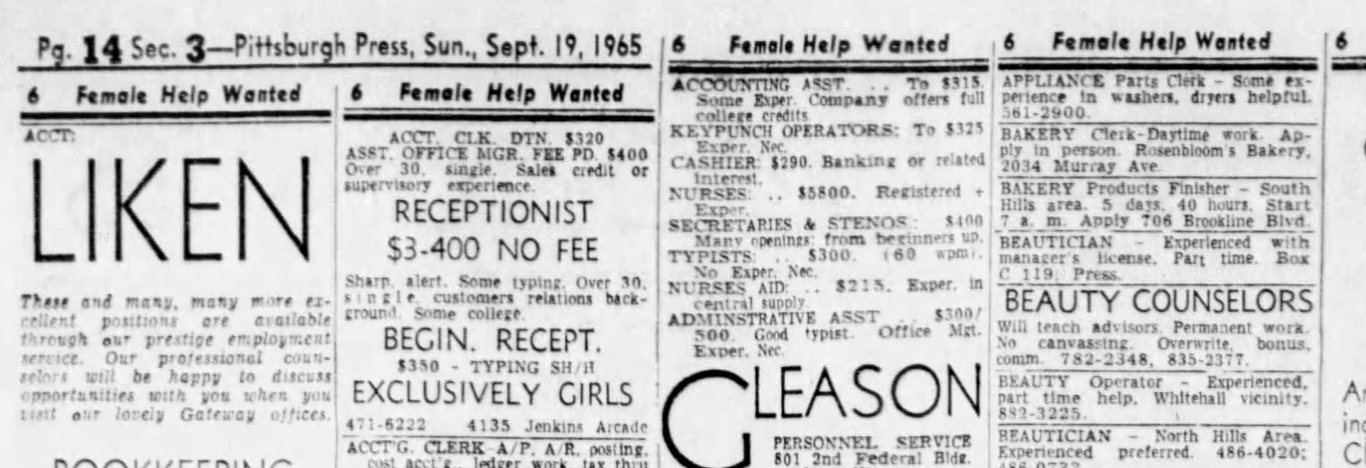 In 1973 the Supreme Court outlawed sex-segregated help-wanted ads in newspapers like those in The Pittsburgh Press, which was the plaintiff in that landmark case.