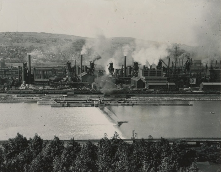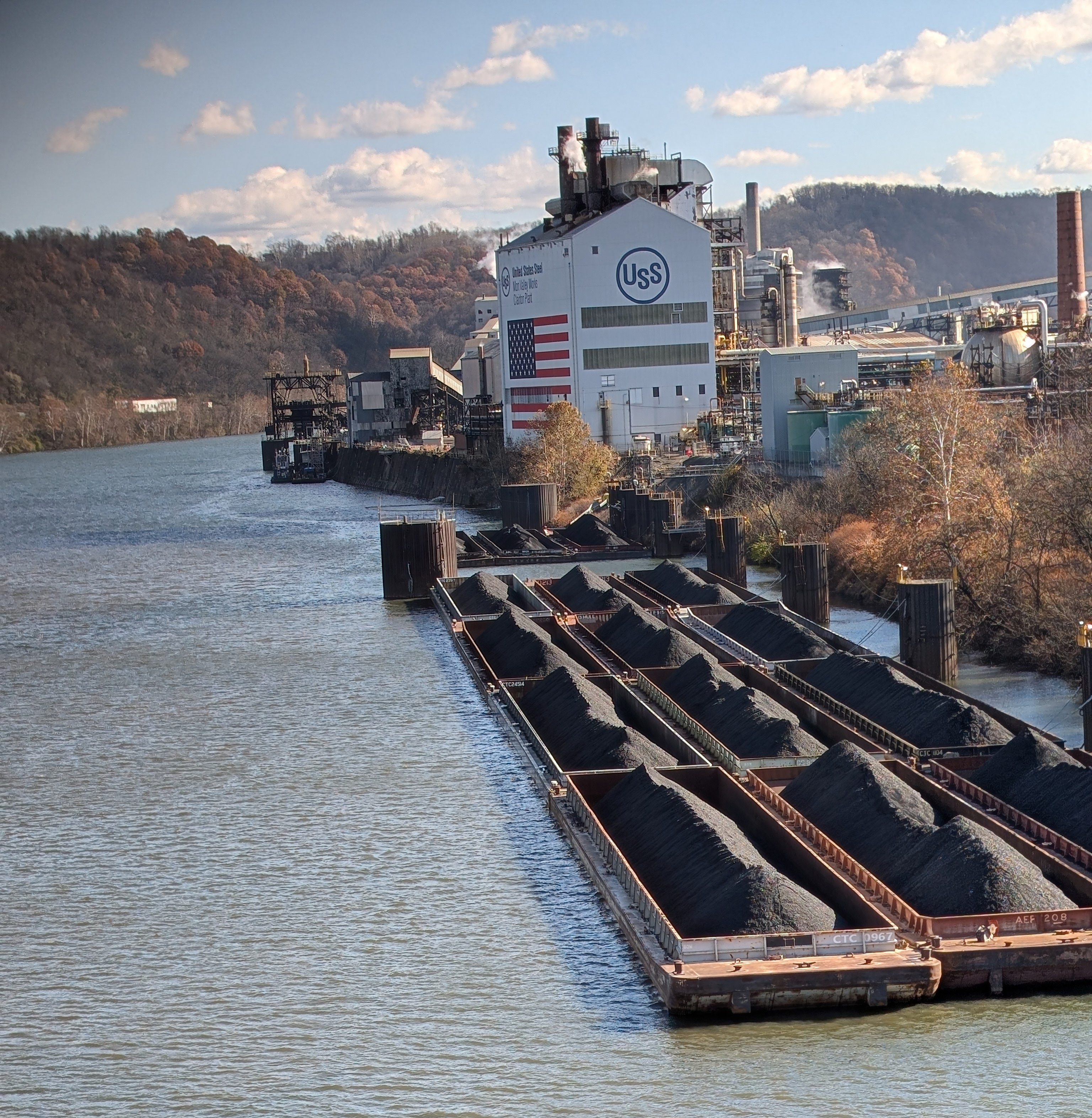 Coal motors down the Monongahela River on barges to Clairton and leaves as coke on other barges bound for Braddock. There, the workers forge the coke with Minnesota iron and other materials to form steel slabs. These go by rail to West Mifflin, where the Irvin plant treats the steel and shapes it into coils for industrial use.