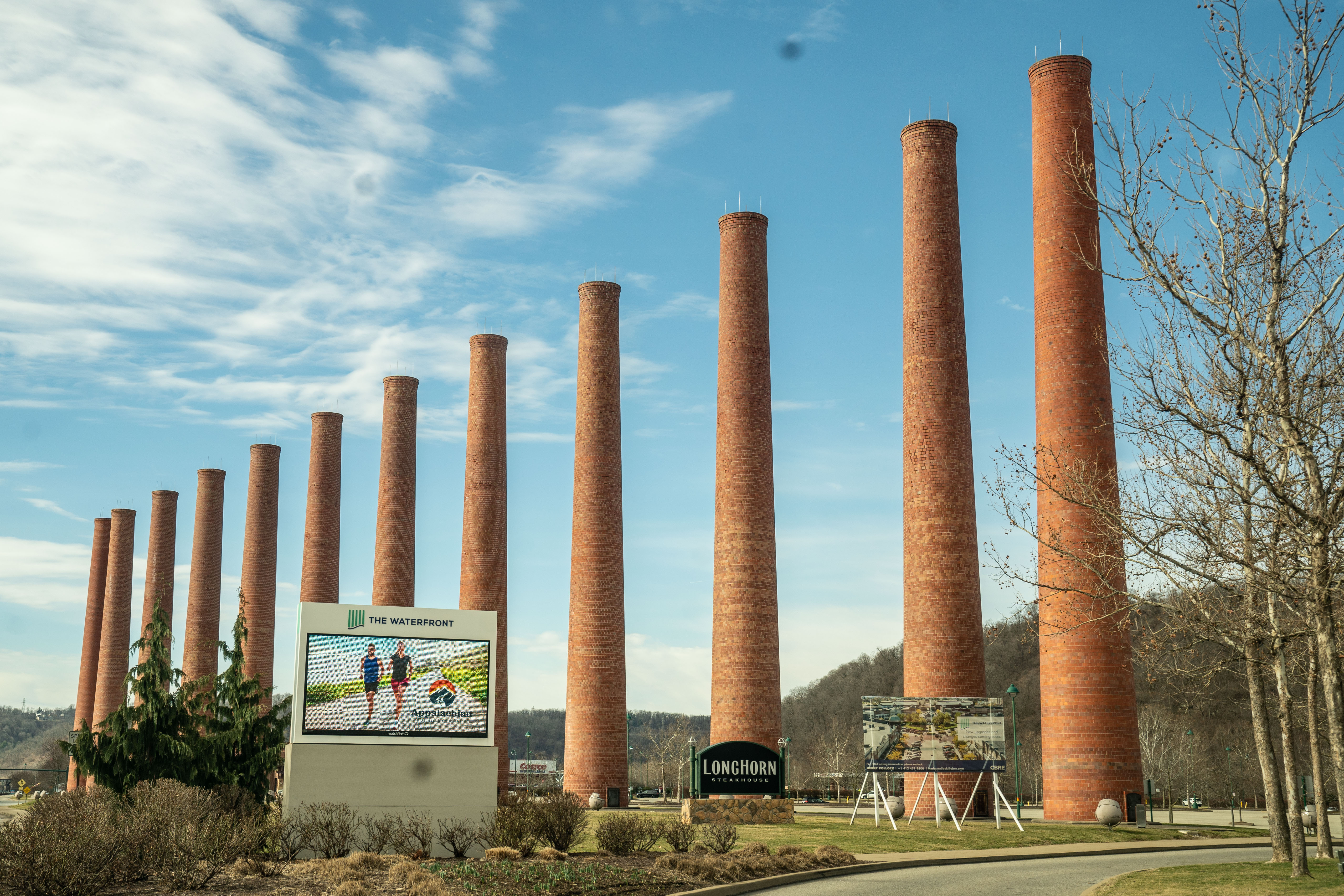 Homestead bustles at the riverbank where The Waterfront shopping complex stands, but the old main street of Eighth Avenue crumbles one block south, minimally touched by the nearby prosperity. The most visible remnant of the once mighty Homestead Works is a line of towering mill chimneys preserved at one end of the shopping complex.